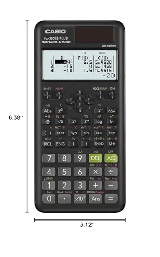 Casio FX-300ESPLS2-S 2nd Edition Scientific Calculator with sleek new design and slide on hard case with Natural Textbook Display and improved math functionality. 262 Built-in Math Functions:, including basic and advanced scientific, exponential and trigonometric, fractions, regression analysis and more. It has been designed as the perfect choice for middle school through high school students learning General Math, Trigonometry, Statistics, Algebra I and II, Pre-Algebra, Geometry, Physics. Entry Logic: V.P.A.M. operating system. Solar power with battery back-up. Dimensions: W 3 1/8 x L 6 3/8 x H 1/2 inches 3.7 oz. Color Black.
