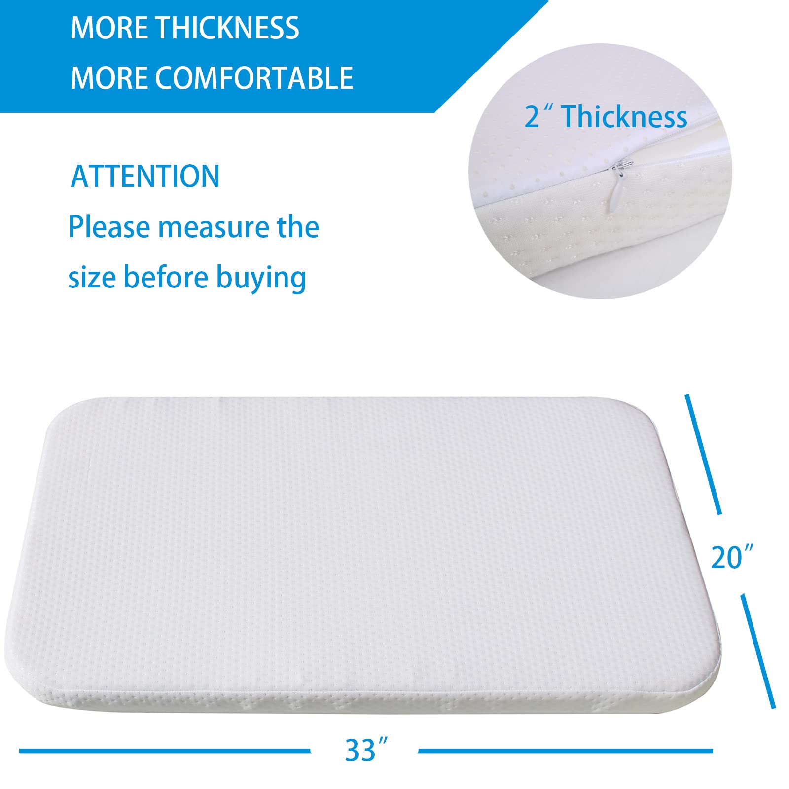 Compatible with Multiple Bassinet Brands: 33"x20"x2" rectangle shape specially designed to fit a variety of popular bassinet brands, including fit for Baby Delight & KoolerThings & ANGELBLISS & YADAQE& Jimglo& BCOL & BabyBond & MMBABY & Mika Micky Bedside Sleeper bassinet.