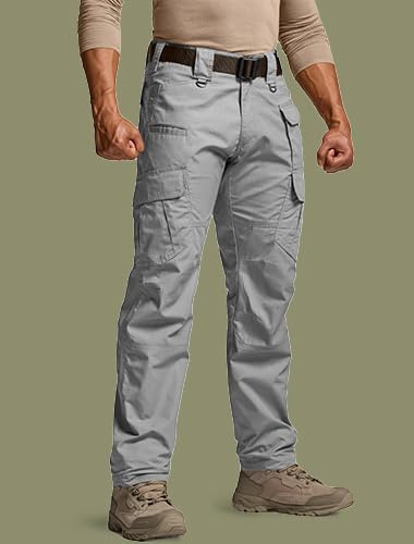 Description CQR Men's Tactical Pants Series Suitable for tactical, combat, military training, fishing, climbing, hiking, motorcycling, and outdoor activities *** Exclusive Tactical Belt is NOT included *** Materials Mix of Polyester & Cotton (Ripstop Fabric) is breathable, wrinkle-free, comfortable Duratex Ripstop Fabric Ripstop fabric has excellent durability and has water-resistant and stain-resistant Elastic Waistband Side waistband is to make a secure fit and support the active movement Tactical Layout Multi-purpose cargo pockets allow carrying various tools and equipment without having to hold them in your hands Button and Zipper Closure High-strength and high-density the Metal Alloy Button and Zipper along with a durable mounted stopper