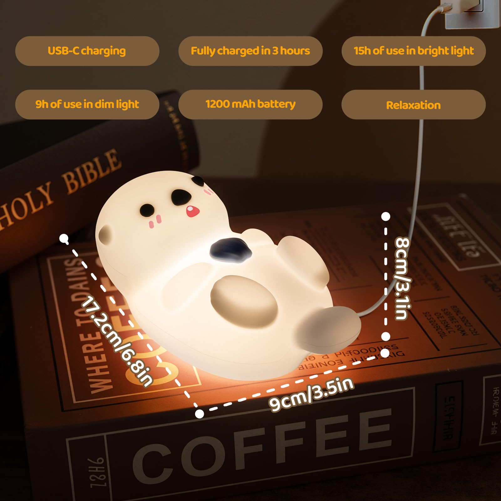 Long-Lasting Rechargeable Battery & Portability:This otter night light for kids is powered by a robust 1200mAh battery, providing up to 20 hours of soft lighting or 6 to 10 hours of bright lighting, ensuring uninterrupted nighttime use. The otter night light for kids’'s USB-C rechargeable design provides convenience on the go, making it perfect for use in the nursery or while traveling. Compact and lightweight, it’s engineered for effortless portability and consistent performance throughout the night.