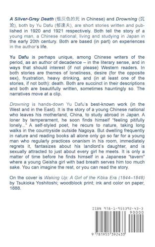 A Silver-Grey Death (银灰色的死 in Chinese) and Drowning (沉沦), both by Yu Dafu (郁達夫), are short stories written and published in 1920 and 1921 respectively. Both tell the story of a young man, a Chinese national, living and studying in Japan in the early 20th century. Both are based (in part) on experiences in the authorʼs life. Yu Dafu is perhaps unique, among Chinese writers of the period, as an author of decadence – in the literary sense, and in ways that should interest (if not please) Western readers. In both stories are themes of loneliness, desire (for the opposite sex), frustration, heavy drinking, and (in at least one of the stories, if not both): death. Both are succinct in their descriptions and both are beautifully written, sometimes hauntingly so. The narratives move at a clip. Drowning ishands-down Yu Dafuʼs best-known work (in the West and in the East). It is the story of a young Chinese national who leaves his motherland, China, to study abroad in Japan. A loner by temperament, he soon finds himself “feeling pitifully lonely...” A self-styled poet, he recurs to nature, taking long walks in the countryside outside Nagoya. But dwelling frequently in nature and reading books all alone only go so far for a young man who regularly practices onanism in his room, immediately regrets it, fantasizes about his landlordʼs daughter, and is sexually attracted to just about every girl he meets. It is only a matter of time before he finds himself in a Japanese “tavern” where a young Geisha girl with bad breath serves him too much sake. You can imagine the rest, or you can read the story.