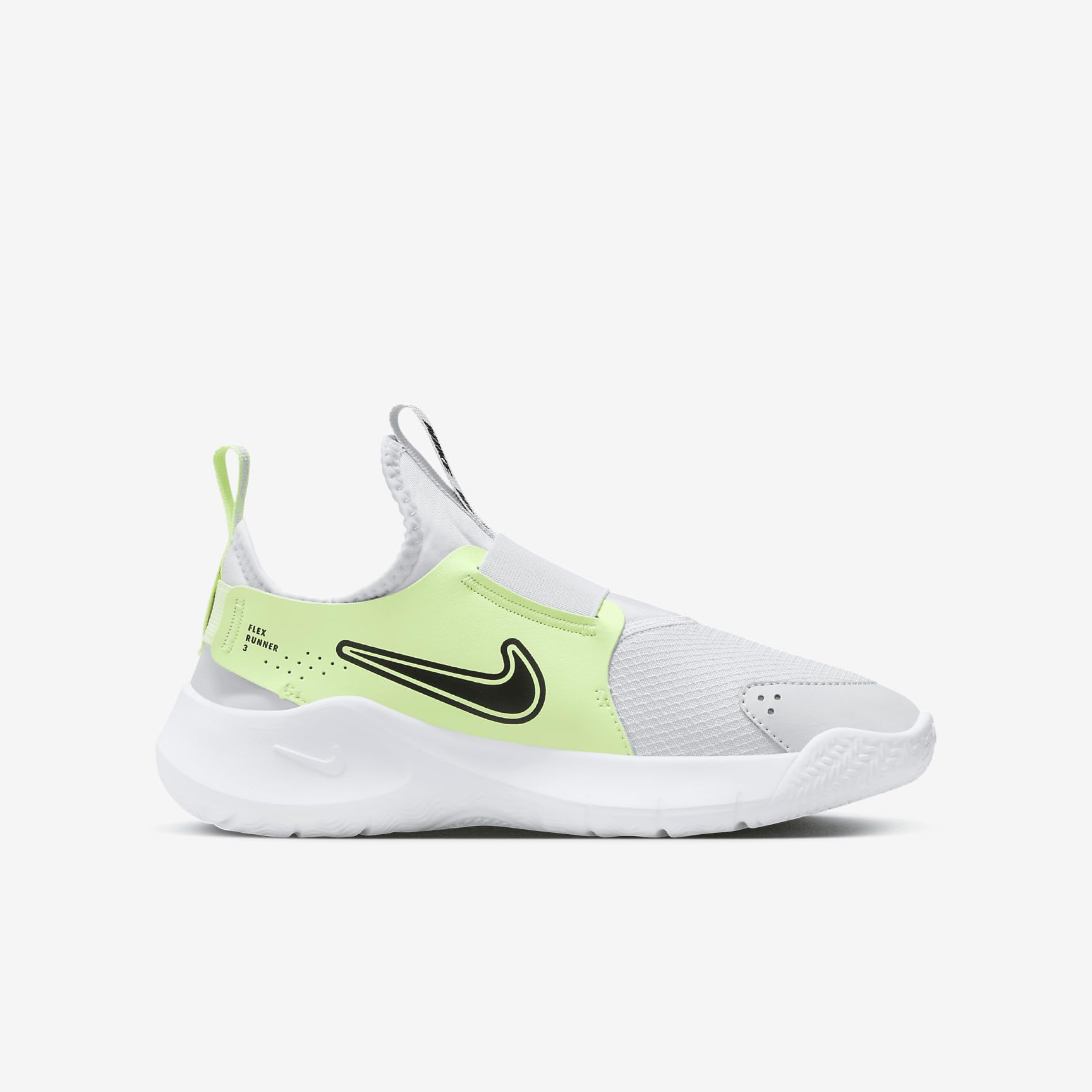 Description Uncomplicated running shoes! The Nike Flex Runner 3 is made for children who want to play all day. It is characterised by an elastic inner shoe design, a flexible outsole and non-slip traction. As the shoes have no laces, you can put them on and take them off super quickly. Ready for a race?