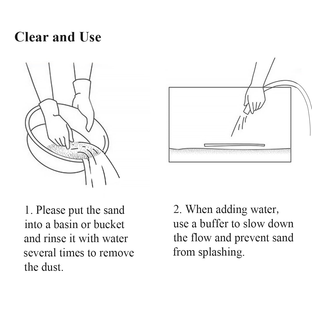 【Safe】 No toxins, no foreign matter. The colored sand is tested and will not bleed in water. Note: the fine sand has some dust and needs to be washed with water a couple of times before putting it into the tank. After rinsing it, it made the tank look so much brighter.
