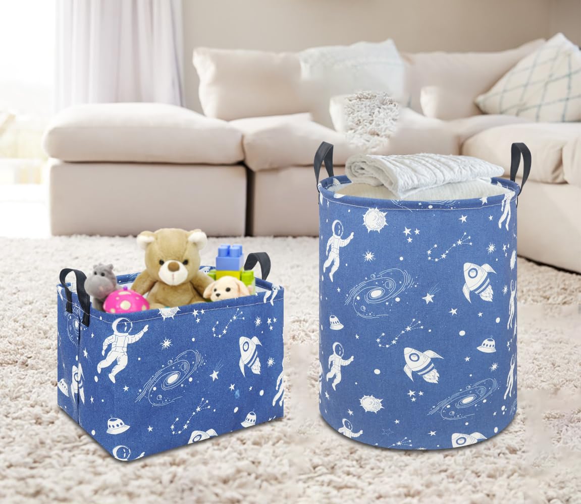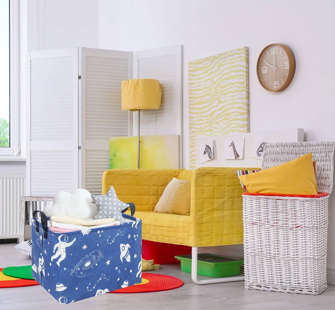 LAUNDRY BASKET SIZE:14.9(L)×10.2(W)×9.8(H)inches,Perfect size for toys organizer,toy bin,pet's stuff storage,clothes basket,gifts basket.It can be used in camping,student apartment,closet,shelves and kitchen.