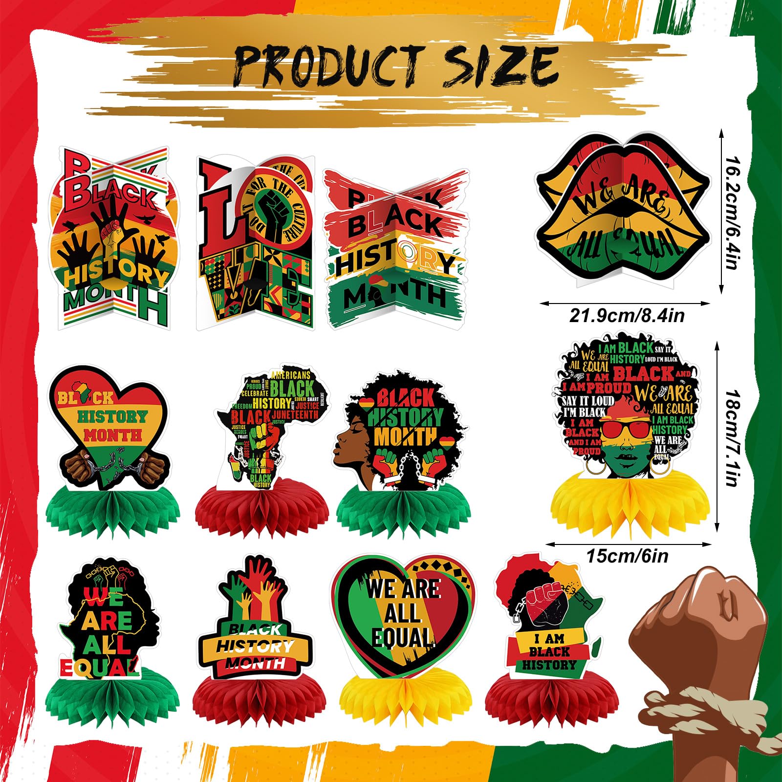 Packaging Information: there are 12 pieces black history theme honeycomb centerpiece, including targets, black history, etc. Whether you are holding a small party or a large party, our packaging can ensure that the corner of your activity place is covered to enhance the atmosphere