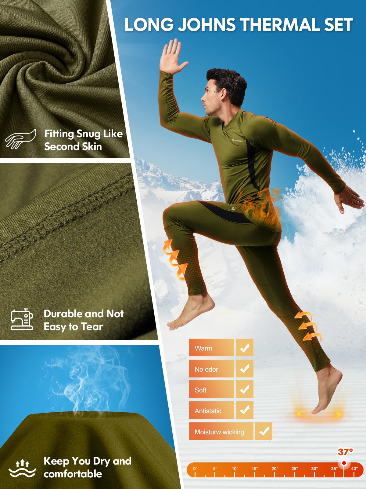 🏃Ultimate Freedom of Movement – With a four-way stretch design, our thermals for men move with you. Whether you're skiing, shoveling snow, or doing outdoor work, these men’s thermals top and bottom set are engineered to provide unrestricted movement. Say goodbye to tight, restrictive layers—these thermals will keep you active and flexible all day long, no matter what your day brings.