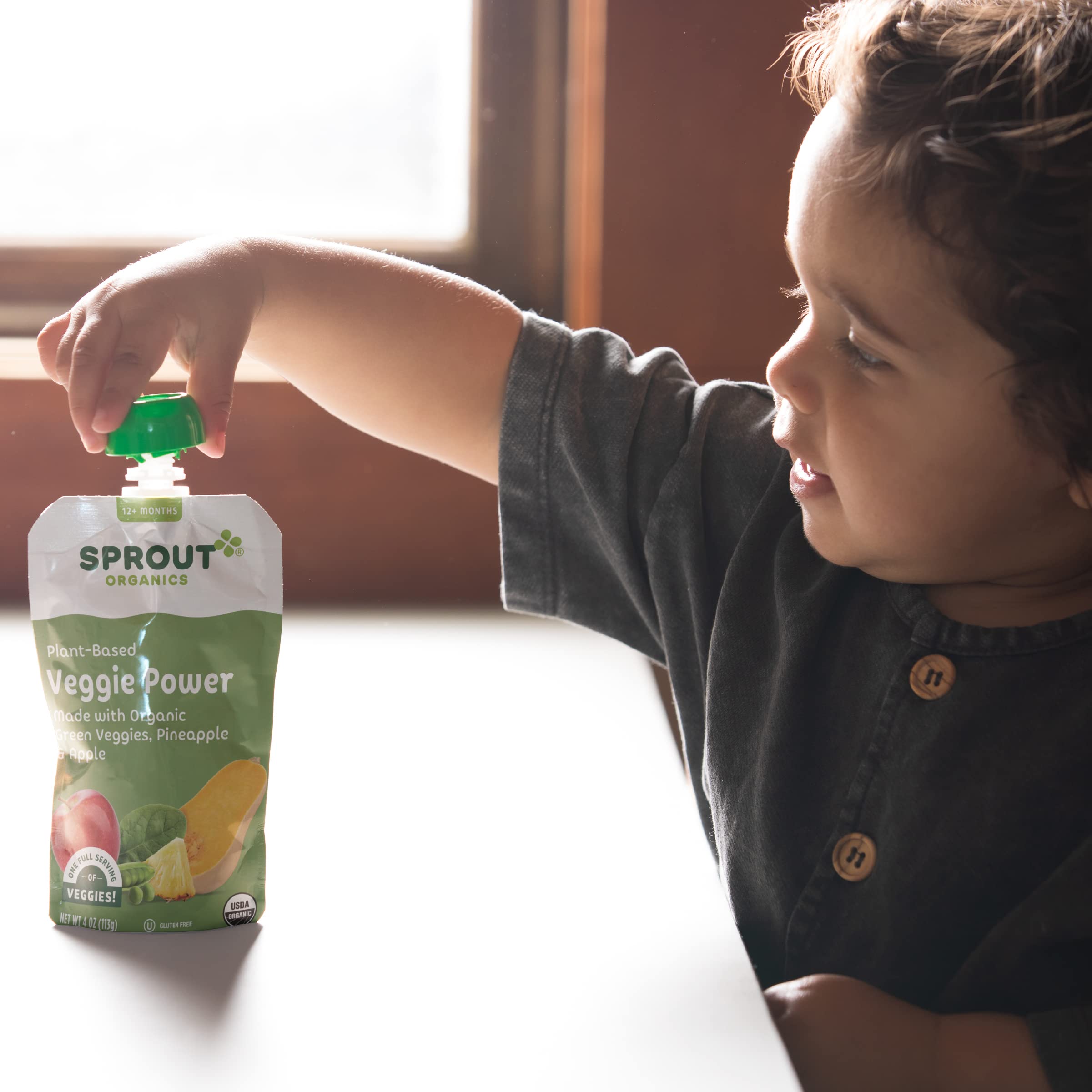 TODDLER-APPROVED: Sprout Stage 4 Veggie Power Pouches offer a delicious blend of whole, organic fruits and veggies your littles one will love; for babies and toddlers 12+ months