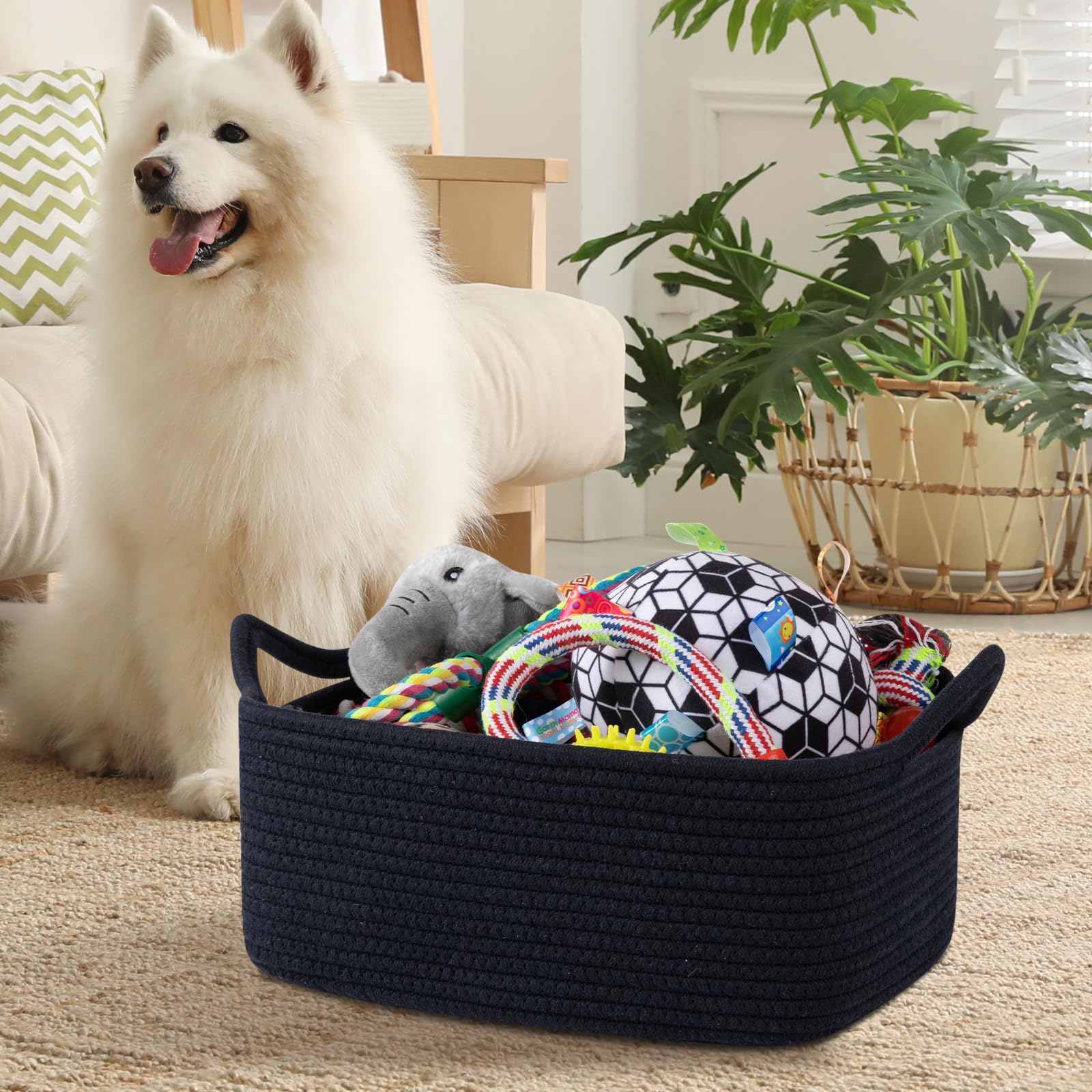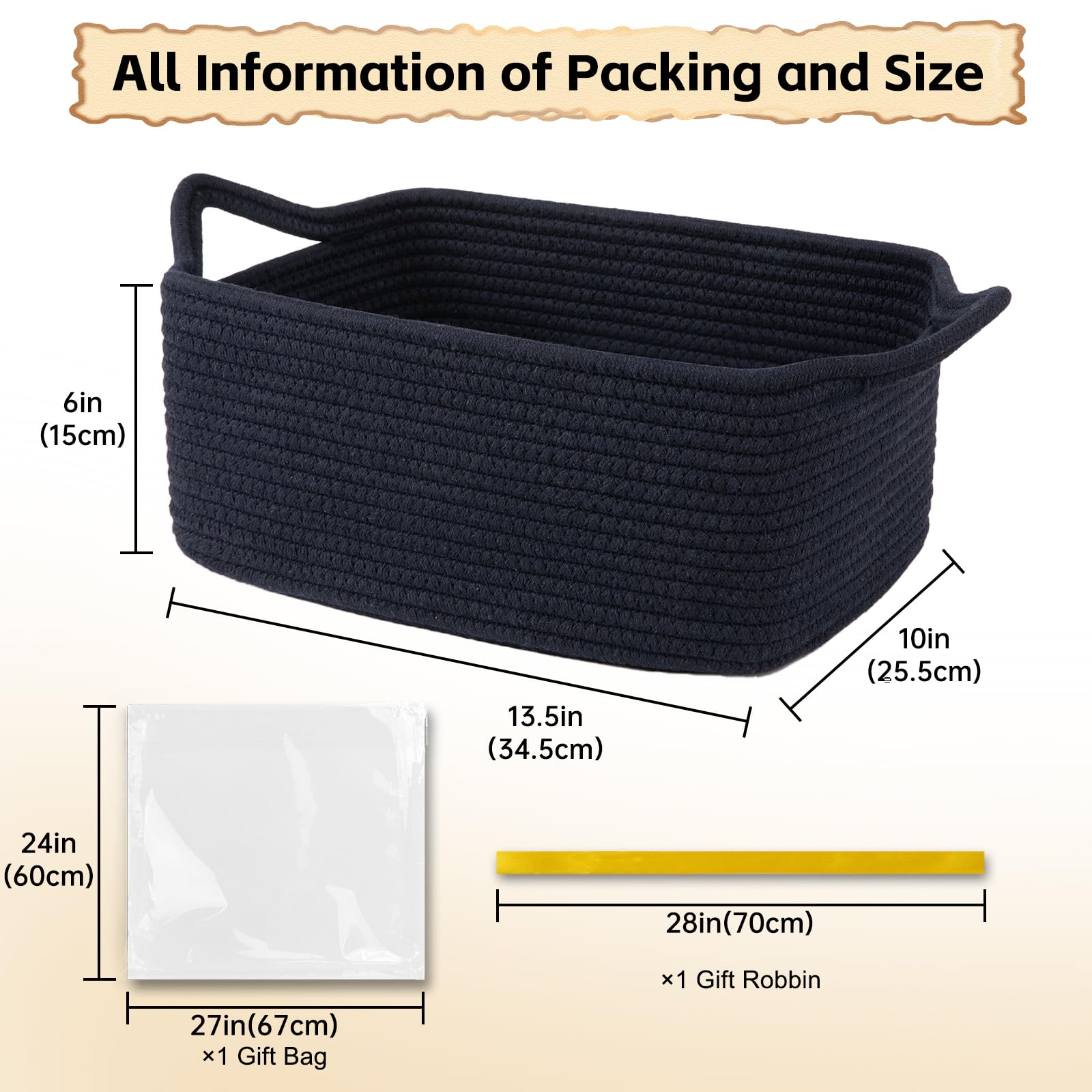 Safe Material: The basket is 13.5*10*6in and made of 100% pure cotton material, no chemical material, no odor, soft and skin friendly. It is no sharp edges that may scratch the floor, especially suitable for children and pets.We are passionate about providing you and your family with a healthy and clean home atmosphere