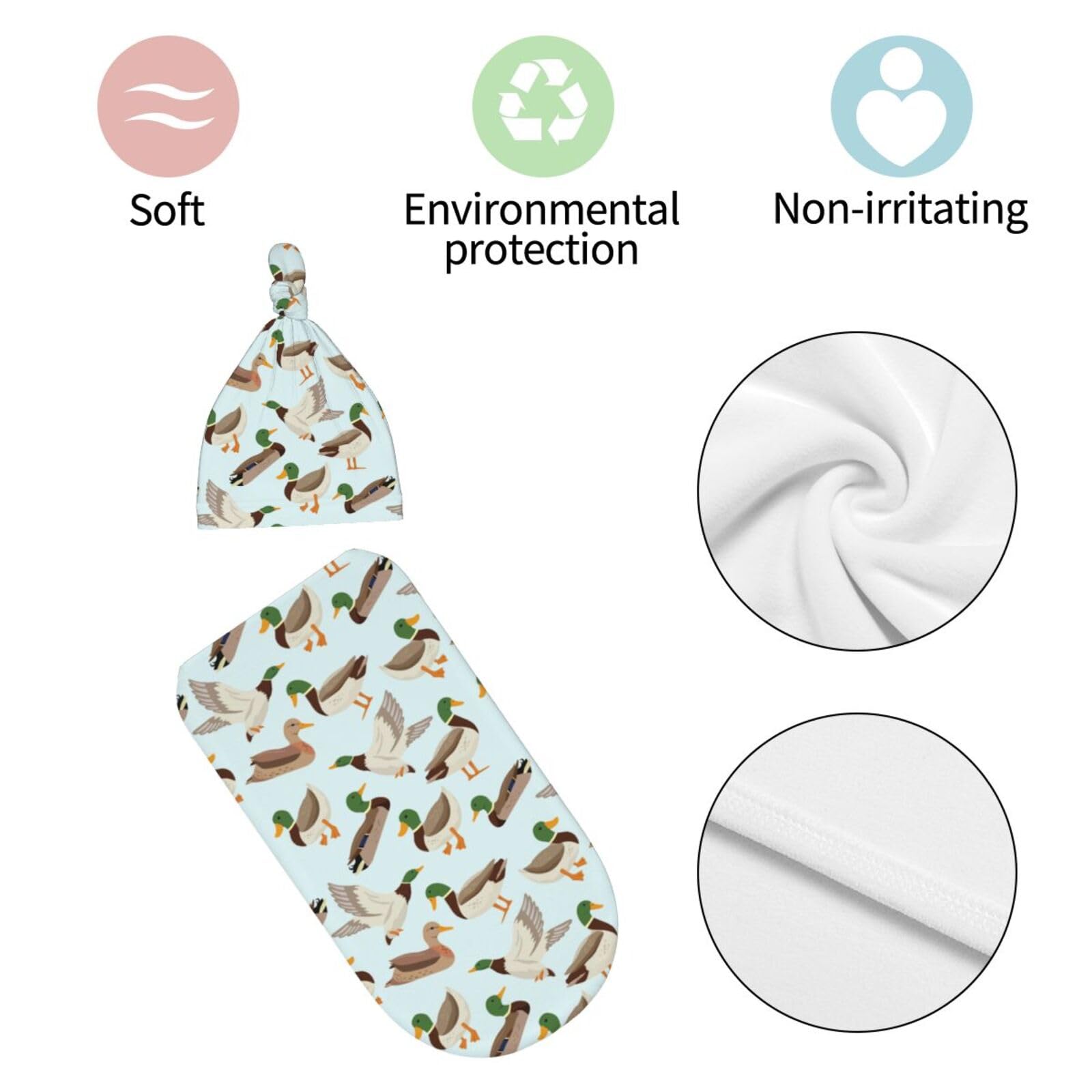 Soft Material: This Cute Mallard Duck Baby Girls And Boys Swaddling Sleep Sack And Beanie Set Is Made Of Coziest Fabric Which Is Ultra-Soft, And Stretchy For Comfort. It Is Warm & Breathable, And Also Enough For All Seasons