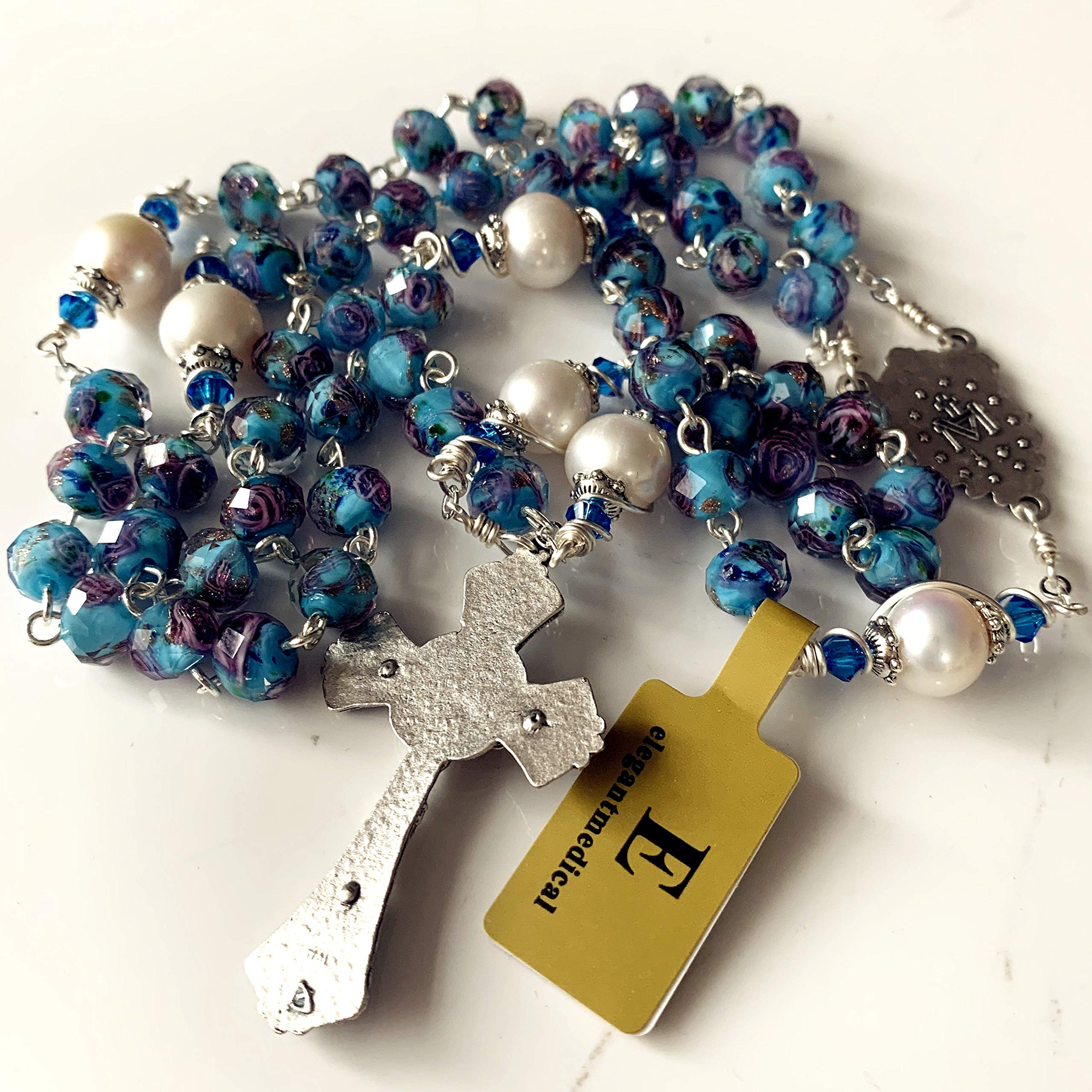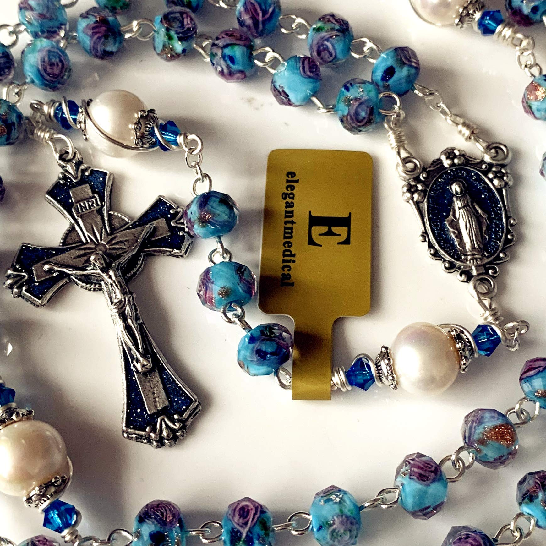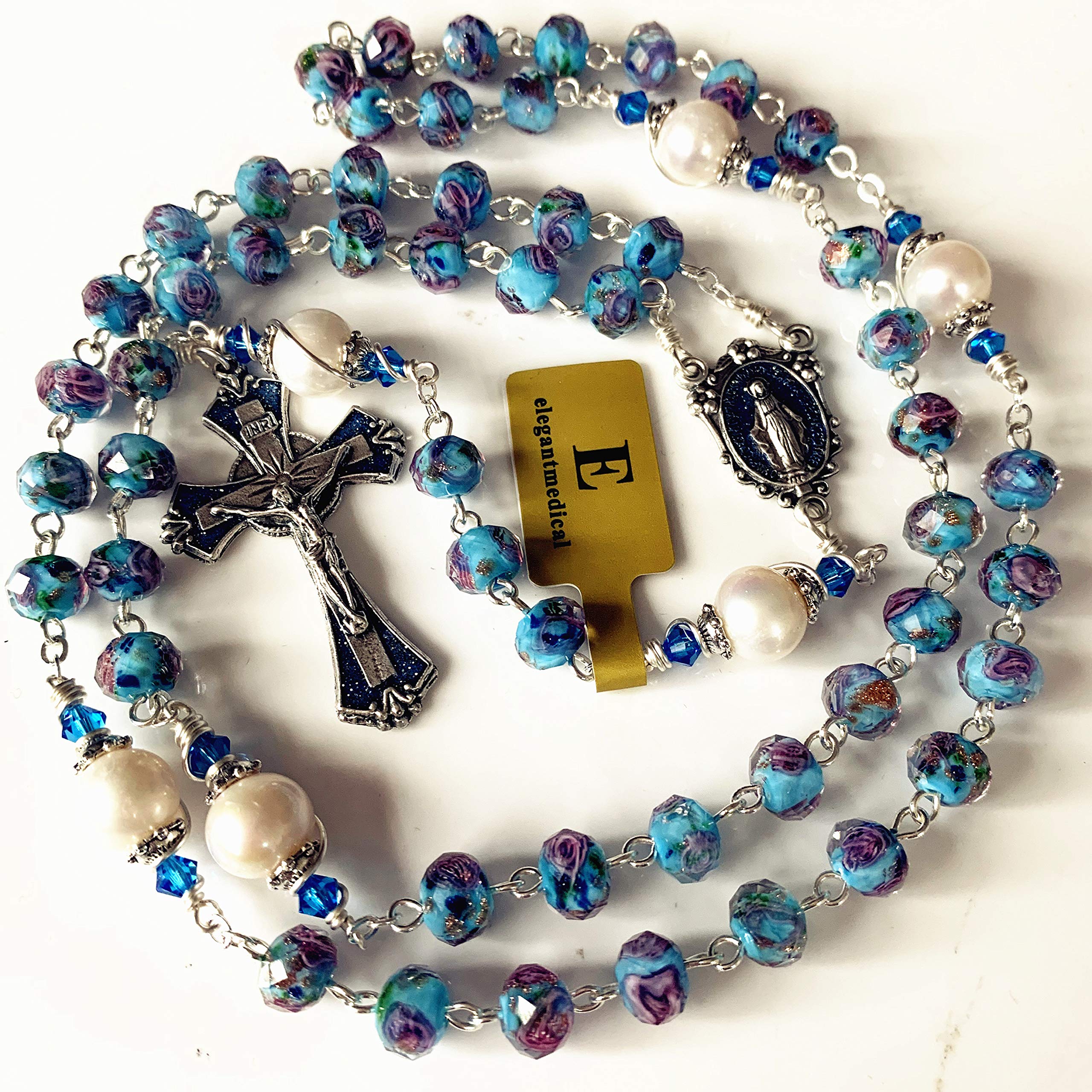 elegantmedical Handmade Veluriyam Rose Beads & Pearl Beads Rosary & Italy Cross Catholic Necklace Gift Box
