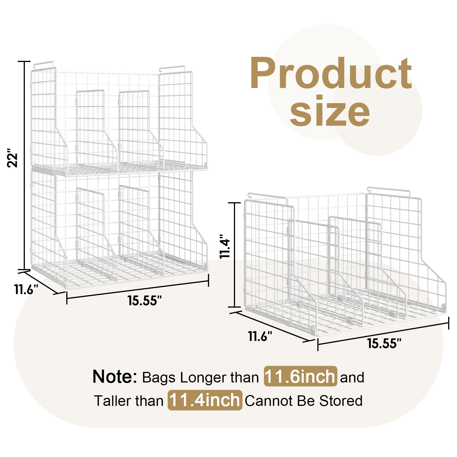 【Suitable for Various Bags】: The flexible design of stackable and adjustable dividers in the bag storage basket accommodates a wide range of bag types. Regardless of the shape, size, or material of the bags, they can be effectively placed and organized. This includes handbags, shoulder bags, crossbody bags, wallets, and more. Note: Bags with a length exceeding 11.4 inches and a height higher than 9.8 inches cannot be stored.