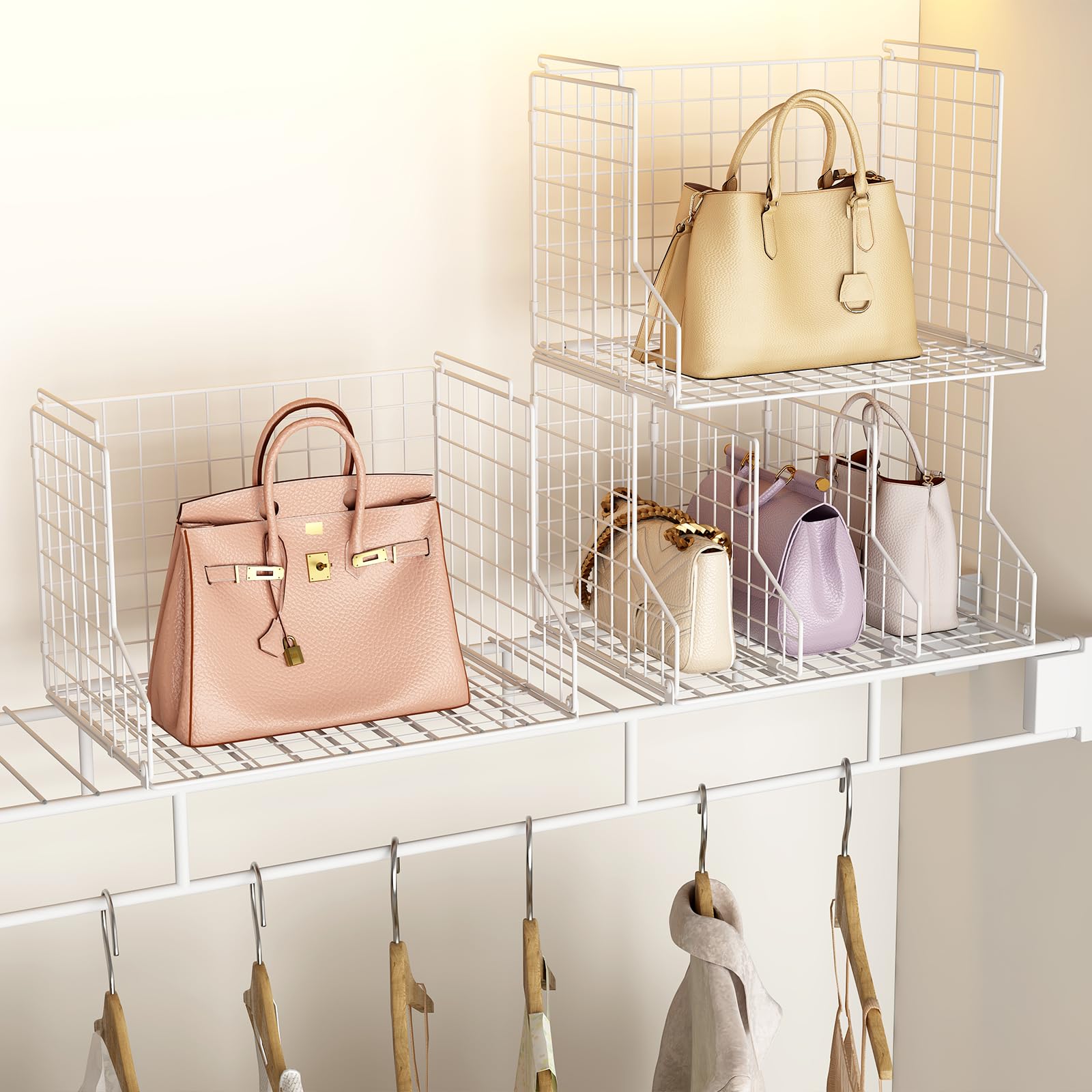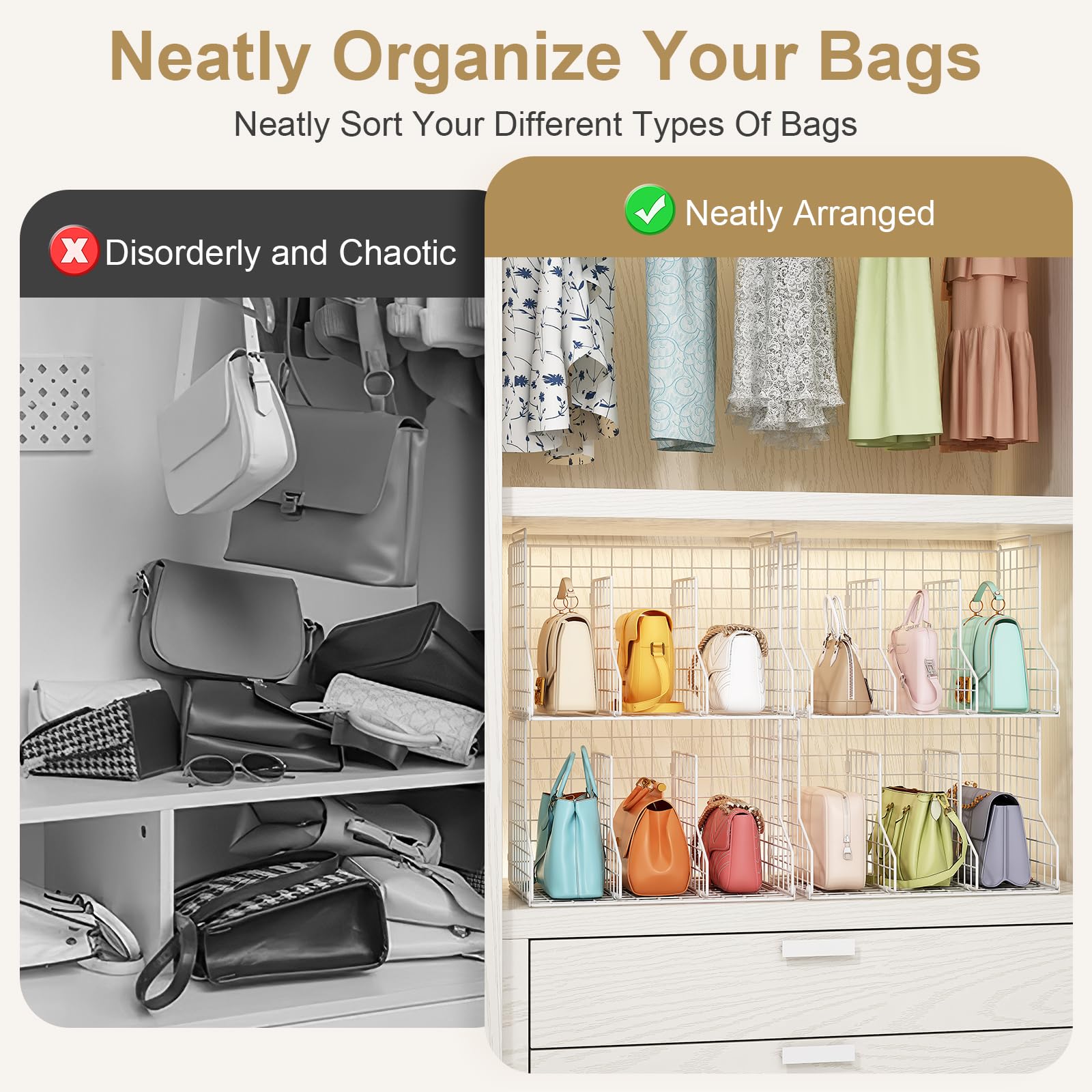Purse Storage Organizer for Closet : Adjustable 2-Pack Dividers Handbag Organizer - Stackable Wire Handbags Storage Baskets -Open Cabinets Wallets Tote Chain Bags Clutches -White