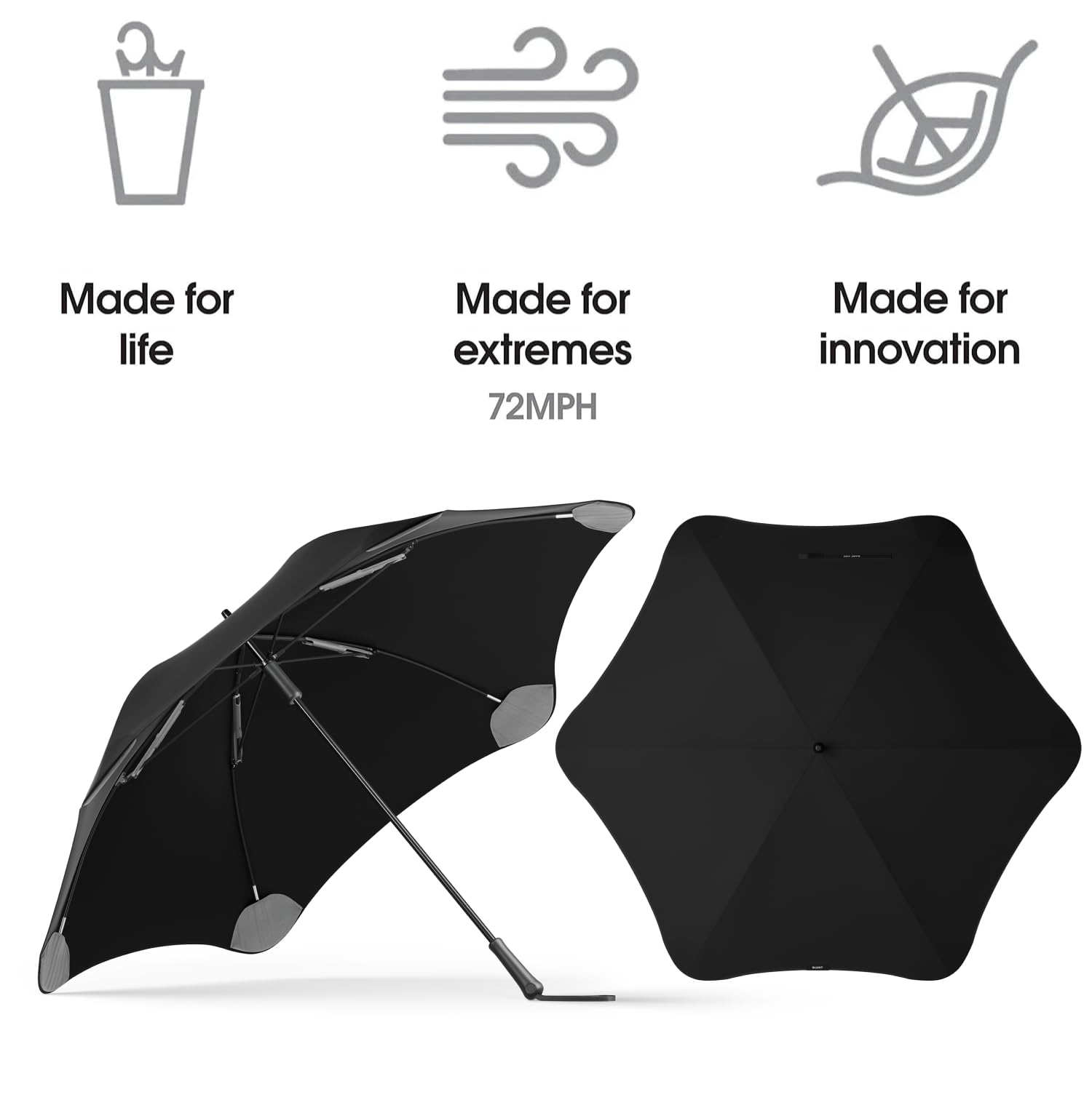 Heavy Duty Materials: Crafted with premium materials for everyday use, it features a sturdy fiberglass frame, ergonomic handle, and a winged canopy. BLUNT umbrellas are safer and more robust thanks to patented tips that eliminate the need for sharp points