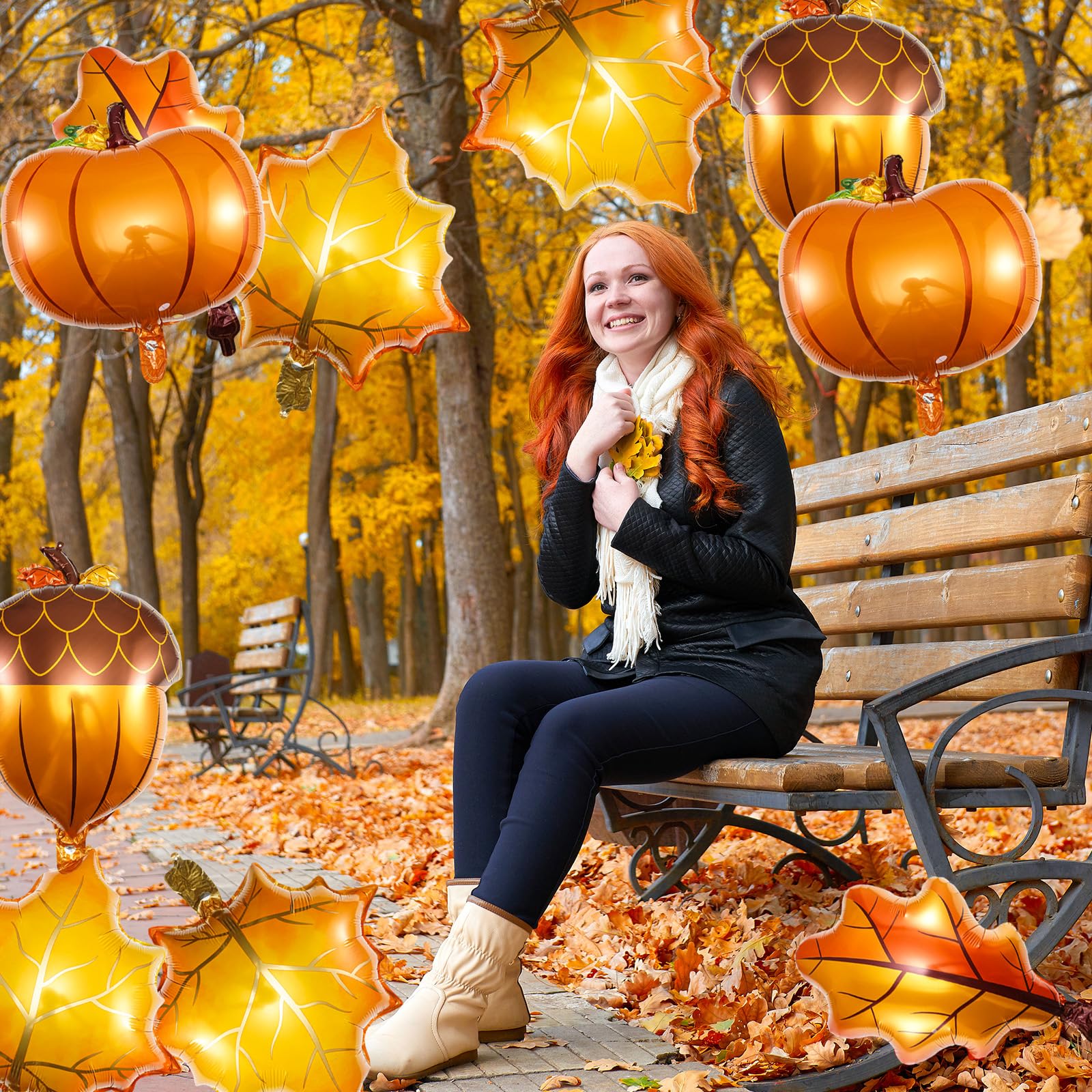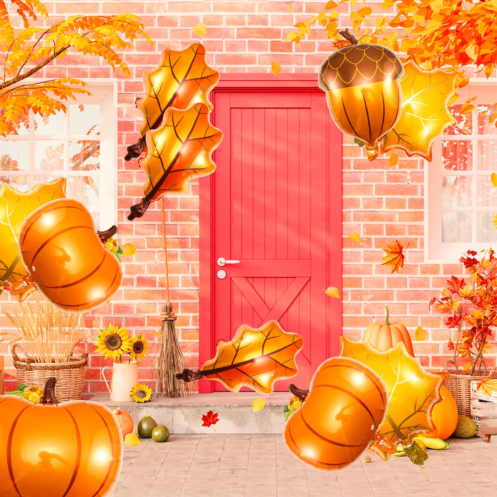 16 Pcs Fall Balloons - Thanksgiving Balloons with Pumpkin, Acorn & Maple Leaf Designs for Fall, Thanksgiving, Autumn Harvest, Birthday, Wedding Parties