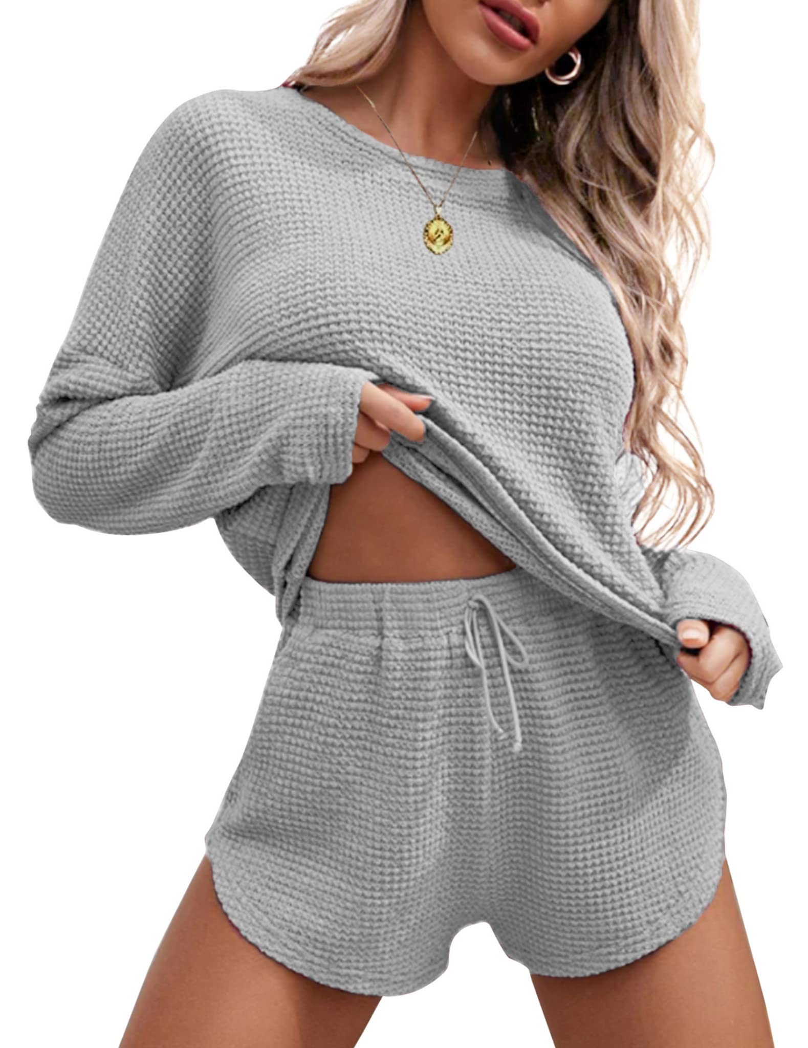 COMFY FABRIC: Waffle Knit lounge sets for women is made of Premium 95%Polyester+5%Spandex elastic knitted fabric, which is light and soft to ensure that your sleep and leisure time are very comfortable