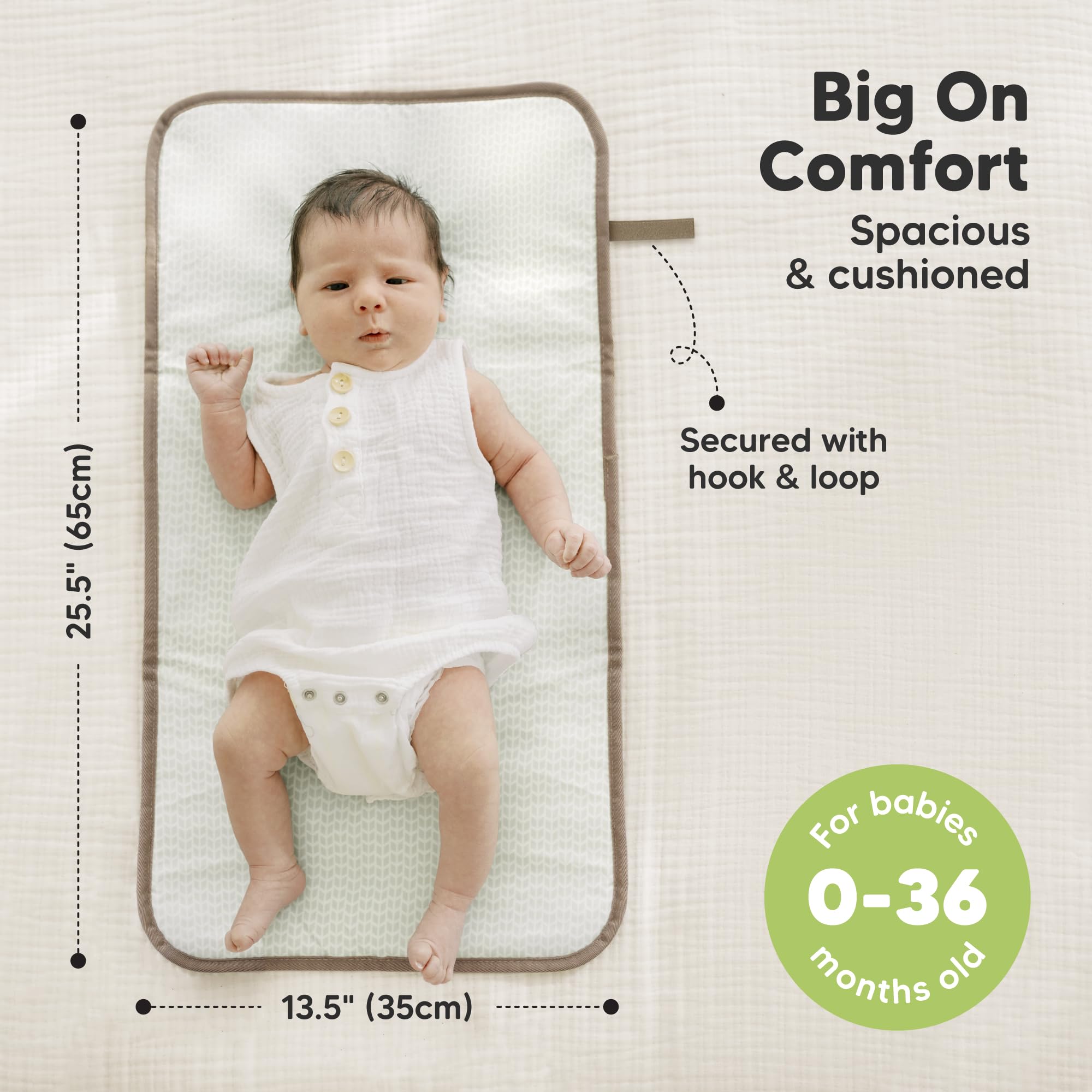 Large Changing Area - Swift Baby Diaper Changing Pad features a large diaper changing area of 25.5” by 13.5” | 65cm by 35cm, making it suitable for newborn to 36 months. You get more space to move your baby around while changing their diaper.