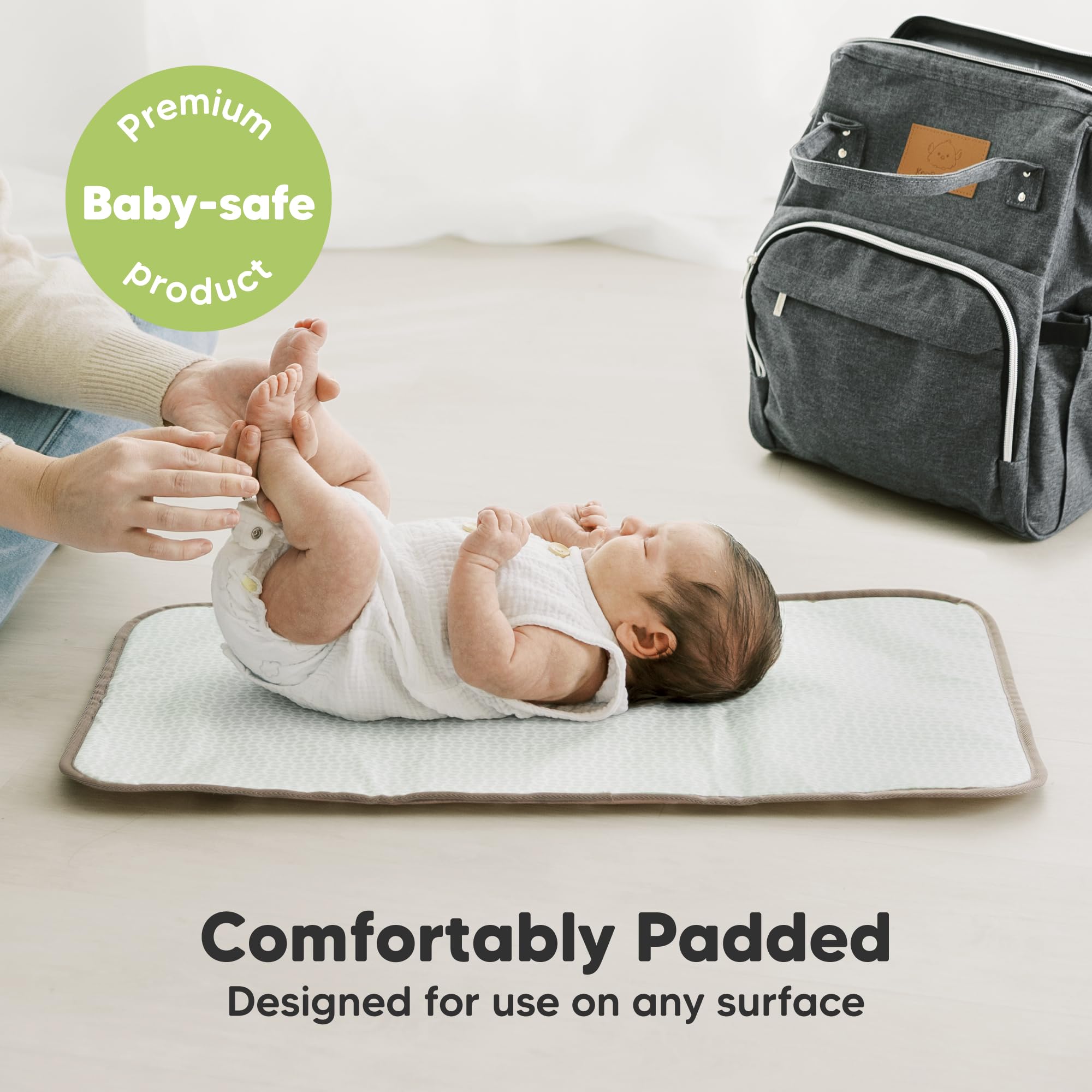 Waterproof Diaper Changing Mat - We use high quality, waterproof and smooth diaper changing surface for easy spot cleaning while on the go. Simply wipe clean with wet wipes or sanitizer after each use.