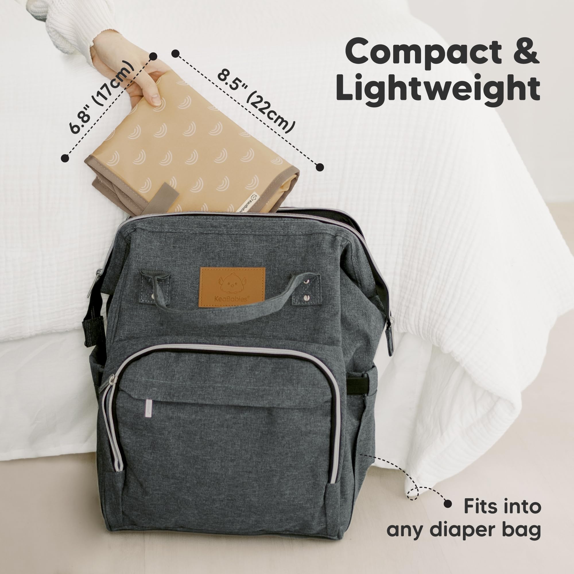 Compact Folded Size - Our Portable Changing Pad is foldable into a clutch-sized 6.8" by 8.5" | 17cm by 22cm pad, taking up minimal space in your diaper bag. Perfect for on-the-go parents, it's an ideal travel changing pad for a day out!