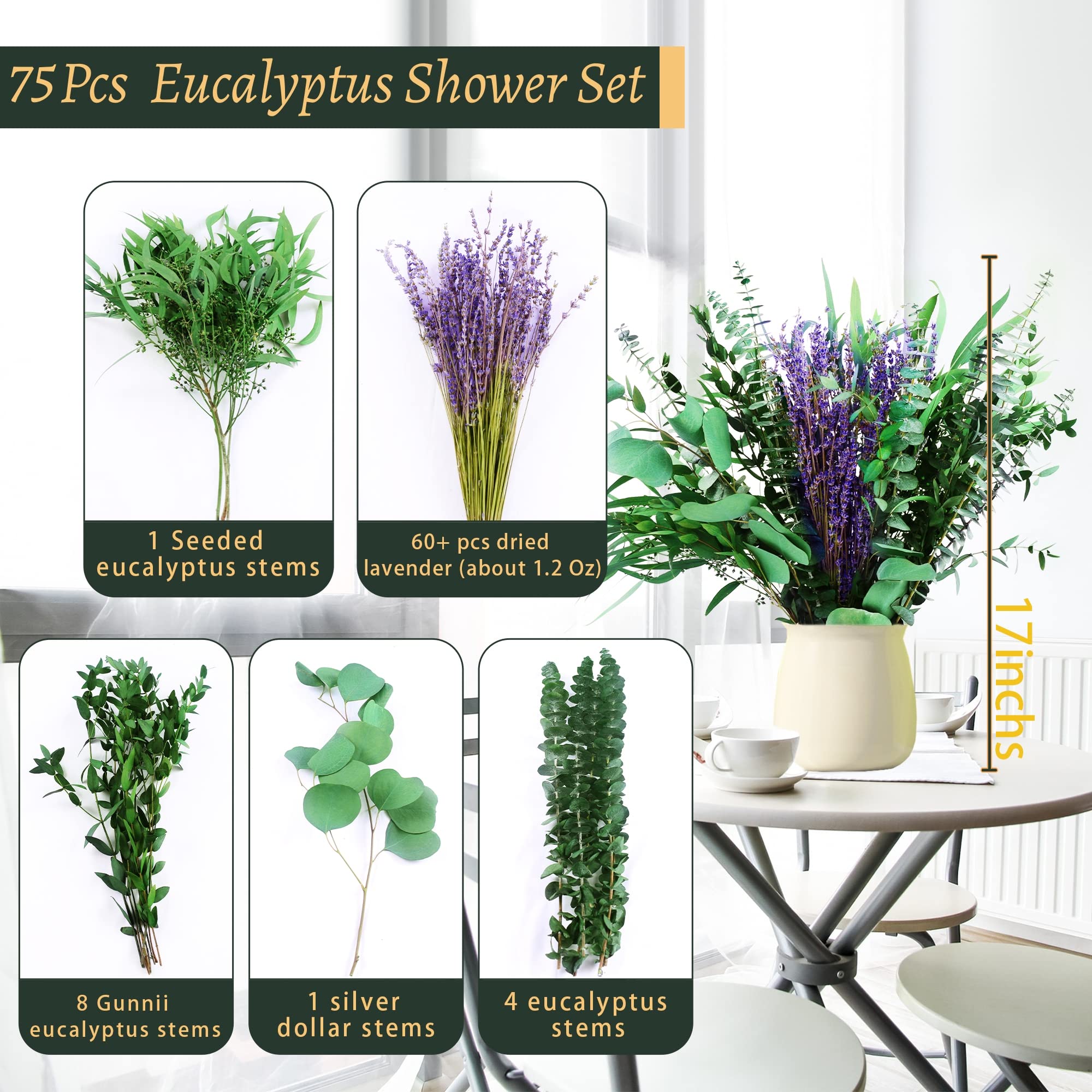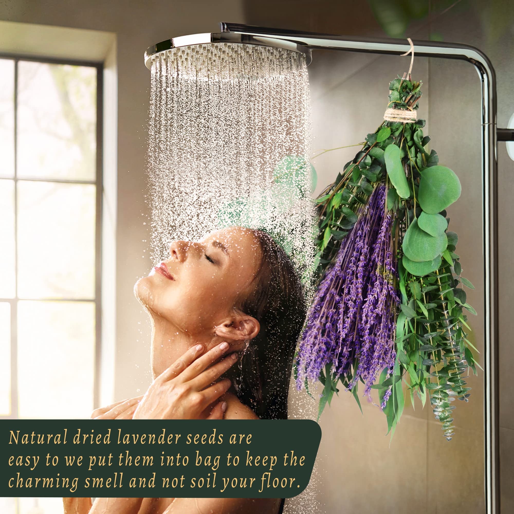 【Designed for Eucalyptus Shower Hanging】 - The package includes 60+ stems (about 1.2Oz) dried lavender flowers, and 14 Pcs 4 kinds of eucalyptus: 4 large stem eucalyptus, 8 Gunnii eucalyptus stems, 1 Seeded eucalyptus stems, and 1 silver dollar stems. And a 39'' free long jute twine is included. The mixed set will bringing you pure fragrance of nature eucalyptus and lavender, satisfy your need for shower and Home SPA.