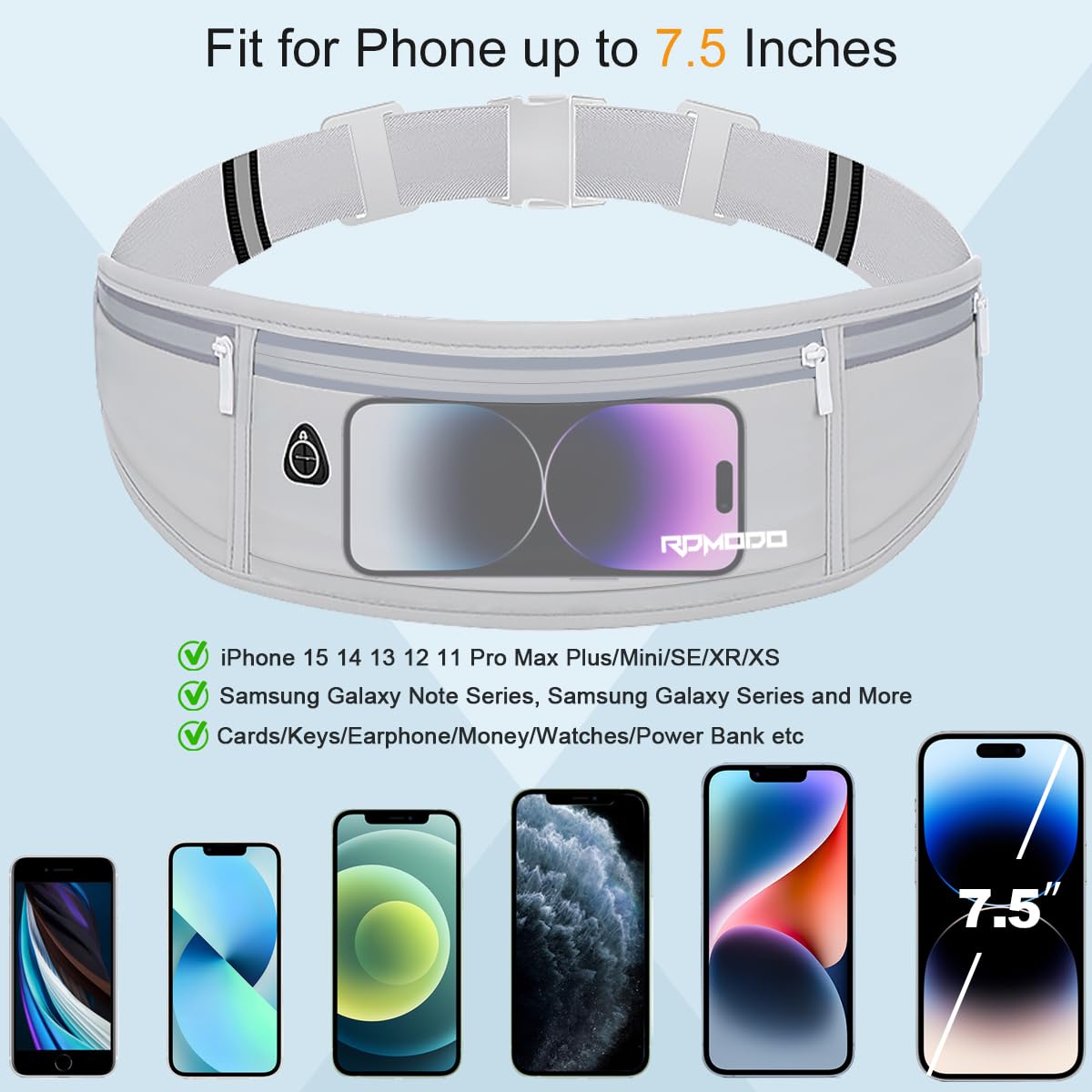 【Multifunction & Compatible Most Cell Phones】The best outdoor running belt you can find. The slim fanny pack for men is suitable for various activities, such as running, walking, hiking, cycling, biking, camping, etc. Compatible with all phones up to 7.5 inches, including iPhone 16 15 14 Plus 13 12 11 Pro Max, Samsung, OnePlus and more.