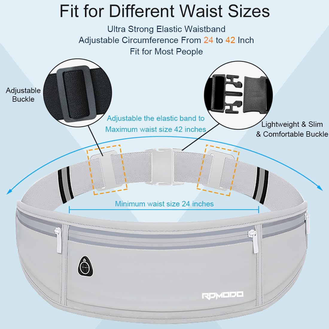 【Adjustable Ultra Elastic Belt】The waist pack with strong elastic adjustable waistband fit for 24 - 42 inches waistline ensure the belt bag for men fixed at the waist, bounce free, not falling or shifting. The elastic band is thinner and softer, making it comfortable to wear without stretching your waist. Its high-performance resilience supports daily stretching and is very durable.