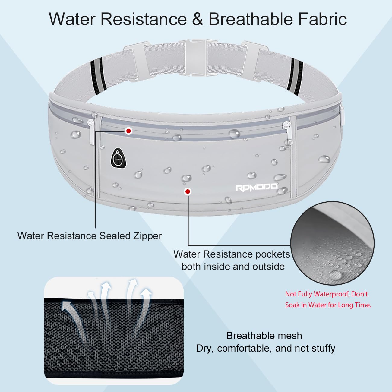 【Premium Material & Water Resistant】The fanny packs for women is make of Nylon and Spandex, which is soft, breathable and skin-friendly. The upgraded phone holder for running add water resistant coating to the front and back fabrics of the pockets, and with the sealed water resistant zipper, its water resistance performance is more outstanding. waist bag can protect your valuables from sweat, rain, and dirt (Not 100% waterproof, please don't expose in rain for long time).