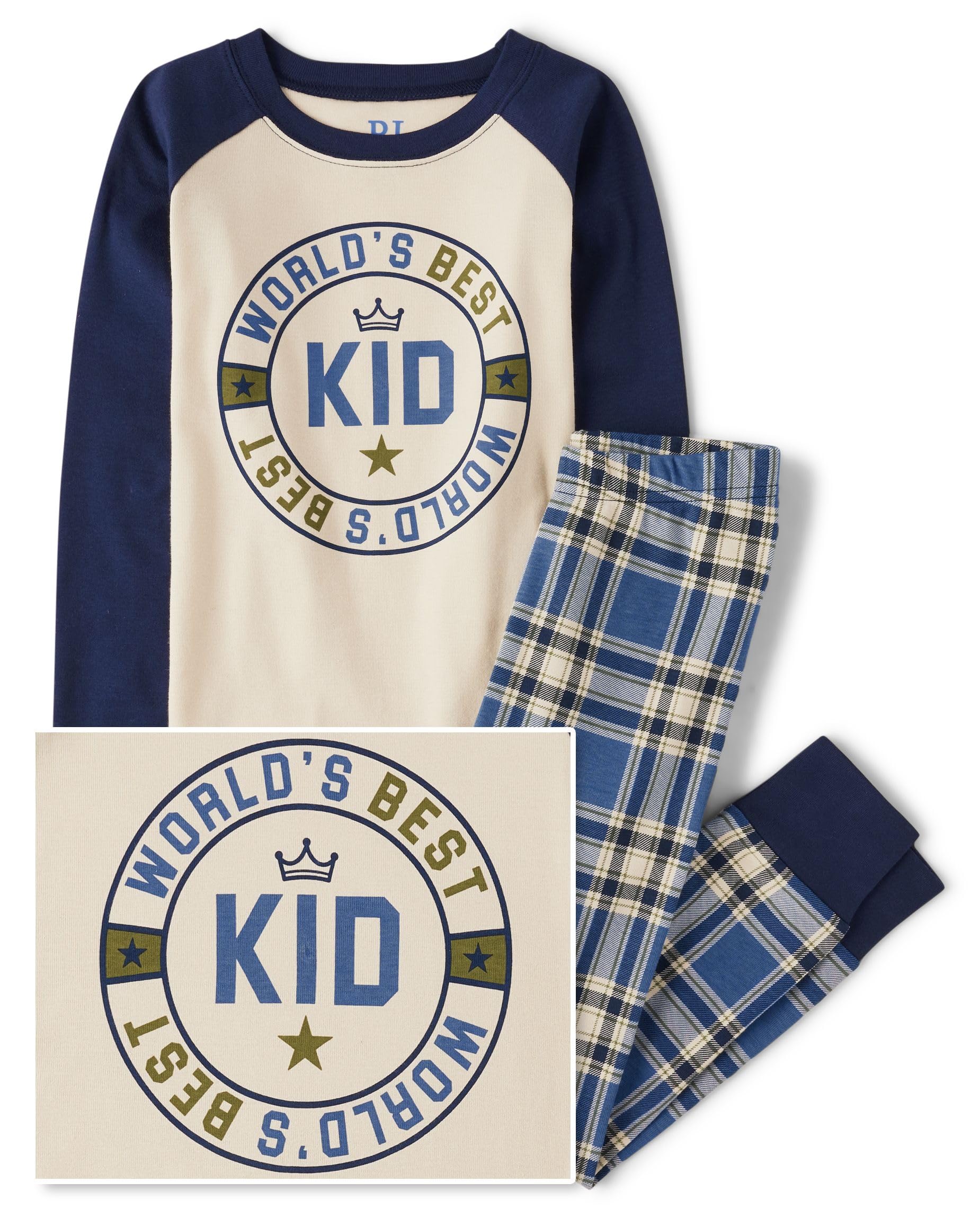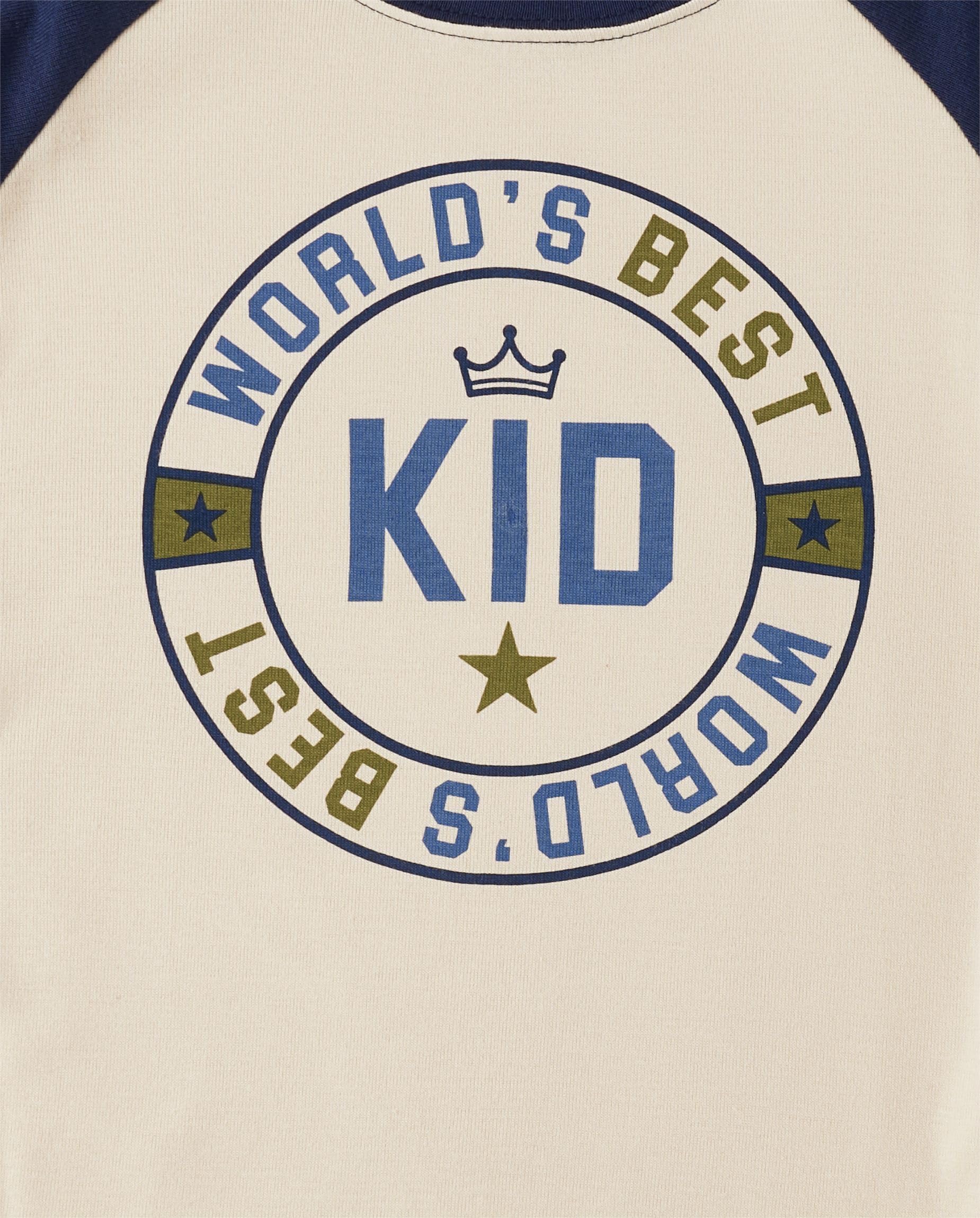 PAJAMA TOP — Features 'World's Best Kid' graphic design at front, contrast rib-knit crew neck and long contrast raglan sleeves with rib-knit cuffs