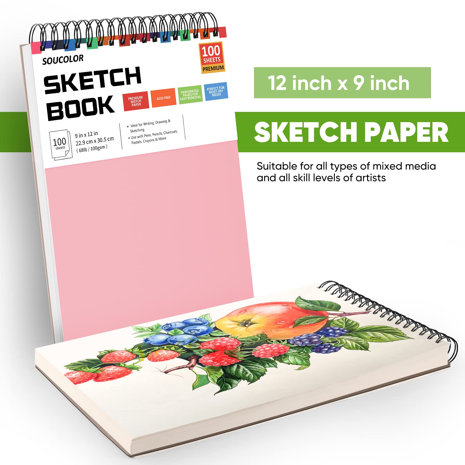 【Premium Paper Quality】Professional Sketch Book Drawing Pads. Great size 9 x 12 inches for all levels of artists. 100 sheets in each sketchpad, total of 100 premium sketch pad paper sheets at the affordable price. Nice texture for drawing, sketching. Excellent art paper book gift for who enjoys sketching, drawing, illustrating, painting, writing and creating art. Great sketchbook for using with graphite pencils, colored pencils, charcoal, pens, soft oil pastel, sketching sticks and more.
