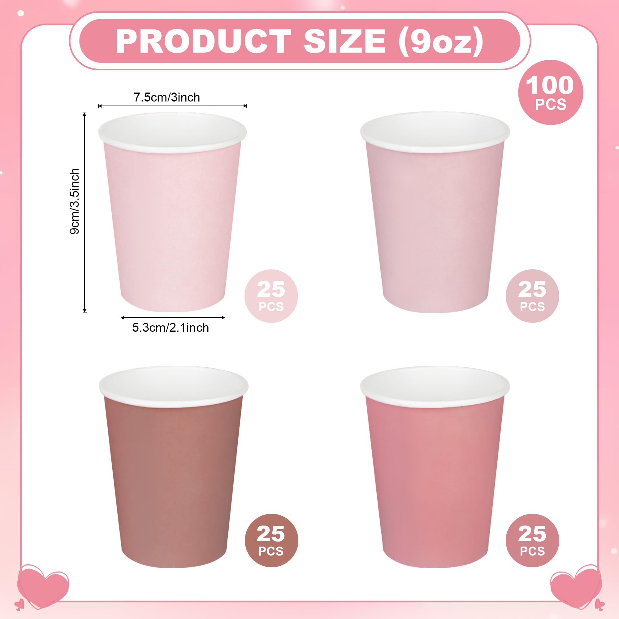 Generous Quantity: Our offering includes a whopping supply of 100 pcs 9 oz duty pink paper cups, ensuring you have enough for all your guests. Whether it's a small gathering or a big celebration, our cups have got you covered.
