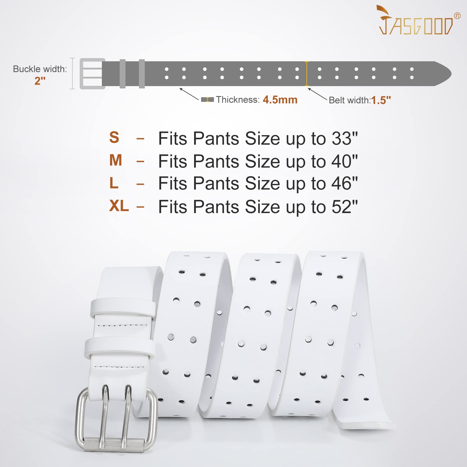 ✅Nearly Infinitely Adjustable Strap: ✅The double prong holes are full every inch going all around this work belt so it will never be too large or small. We have four size: below waist size 33”,38”,45”,51”. Before purchase, please measure your waist size. Easy to adjust the size if you put on a few pounds or lose a few. No hassle!