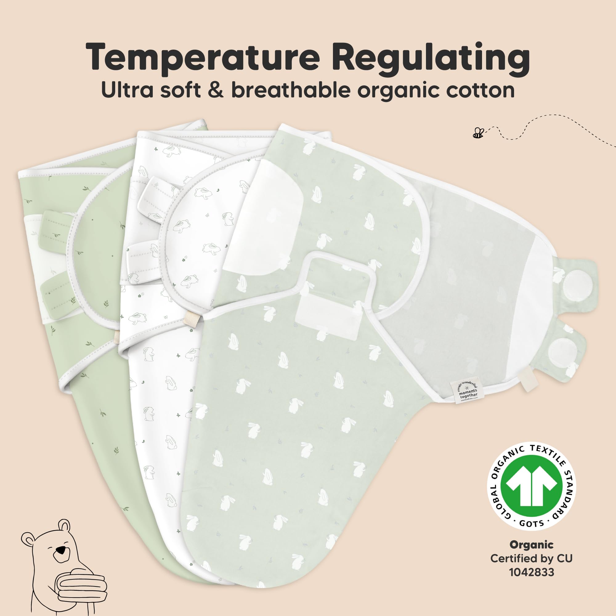Breathable & Temperature-regulating - Our Soothe Swaddle for newborns is made with ultra-soft Organic Cotton (GOTS Certified by CU 1042833), it is lightweight and highly breathable, making it a highly-raved newborn swaddle 3-6 months in all seasons.