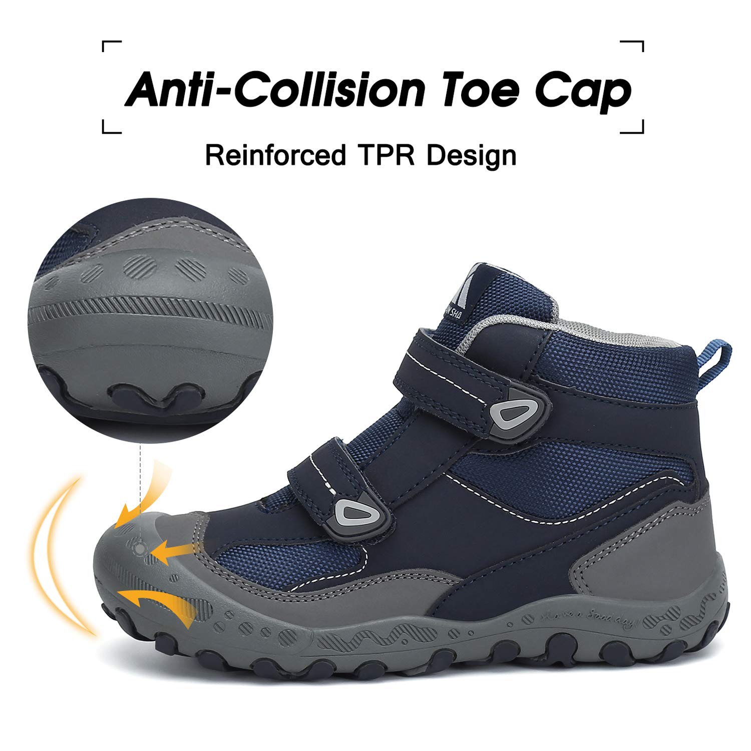 ANTI-COLLISION TOE CAP: Kids hiking boots are with all-inclusive anti-collision rubber toe cap design to protect children's feet safety when playing outdoors.