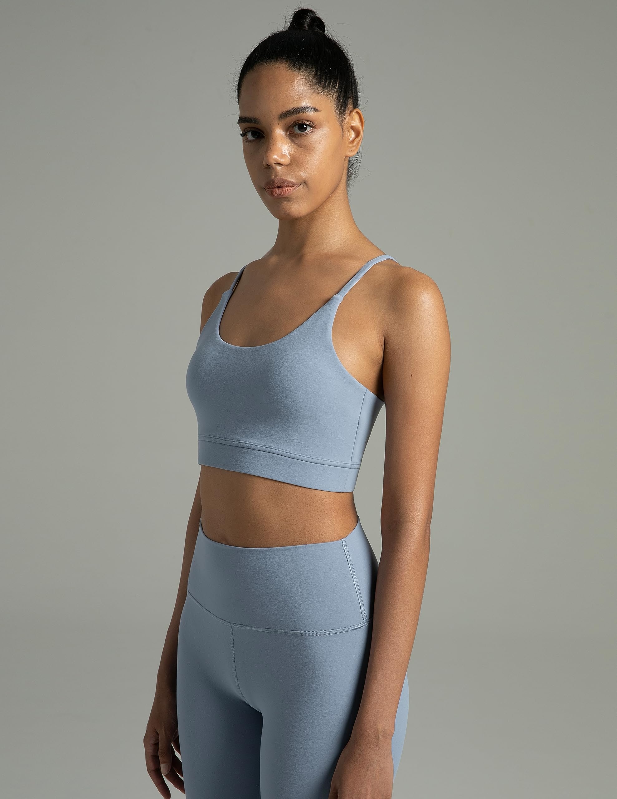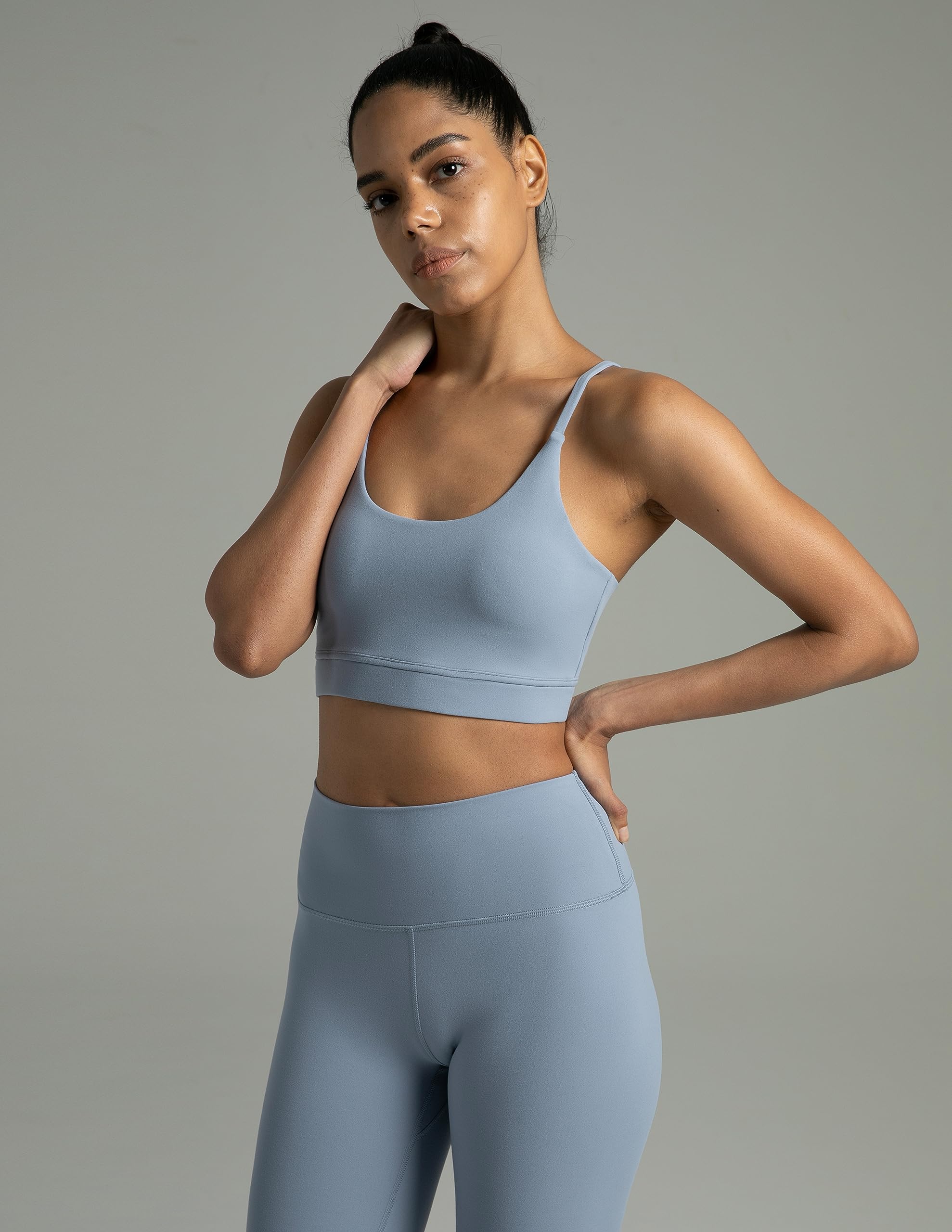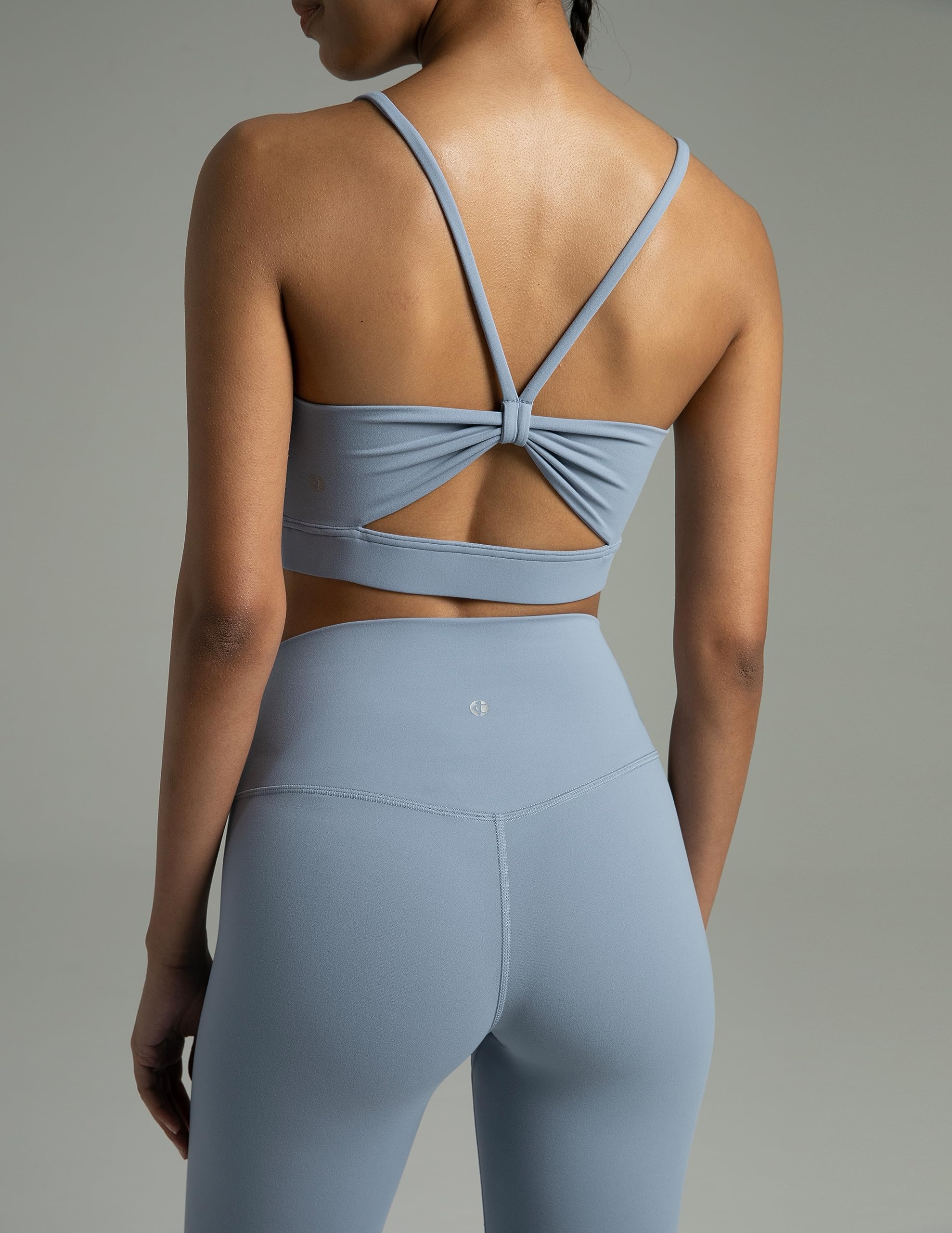 Colorfulkoala Women's Dreamlux Bowknot Strappy Sports Bras Light Impact Workout Yoga Tops(XS, Chambray)