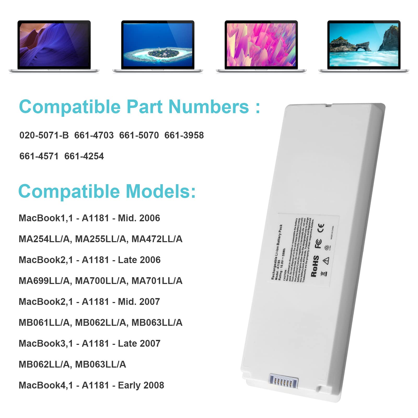 Compatible Part Numbers: A1185 A1181 MA561 MA561FE/A MA561G/A MA561J/A 020-5071-B / 661-4703 / 661-5070 / 661-3958 / 661-4571 / 661-4254