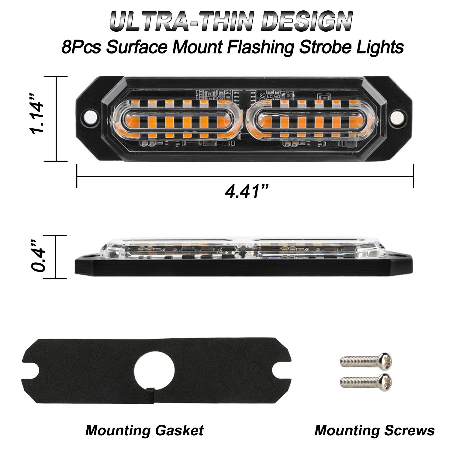 【SUPER VISIBILITY】ASPL 8Pcs 12LED Surface Mount Strobe Lights, each light has a total of 12 high-intensity Led chips. Use aluminum alloy housing + ABS magnifying lens for maximum brightness to ensure more effective warning to other vehicles. These strobe lights can be seen from hundreds of feet away.