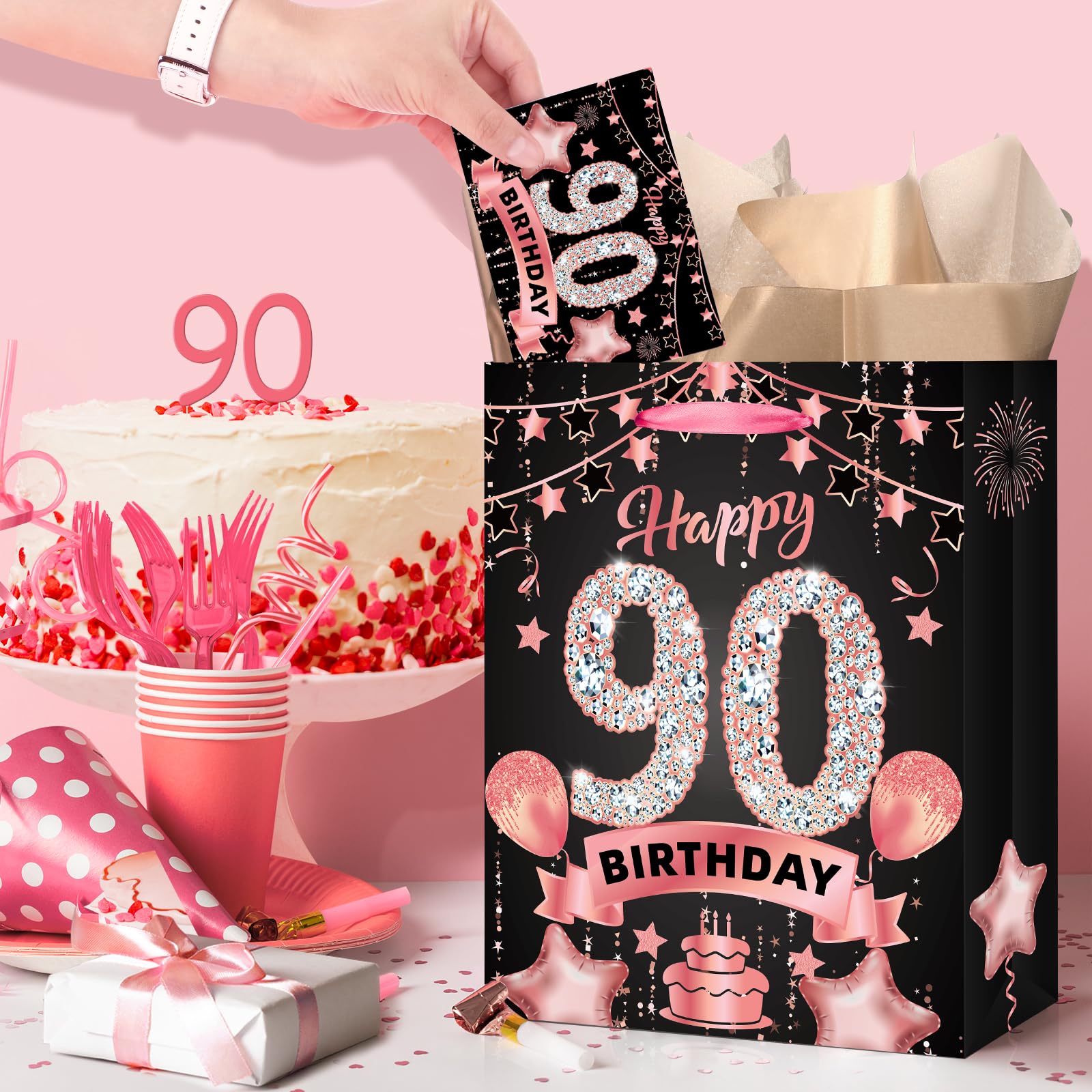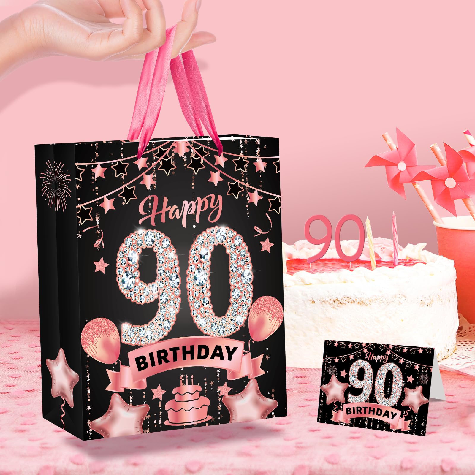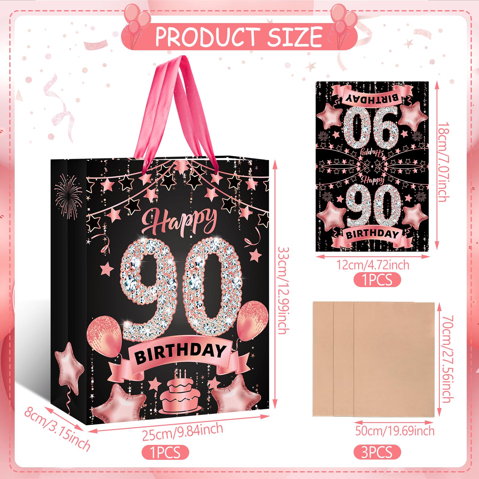 Quality Material:The material of the rose gold 90th birthday Gift Bag is crafted with durability in mind, the 90th Birthday Gift Wrap Bag is made of thick cardboard, come with nice ribbon handles and supportive reinforced bottom,the quality material of the 90th birthday bag ensures that it can be reused