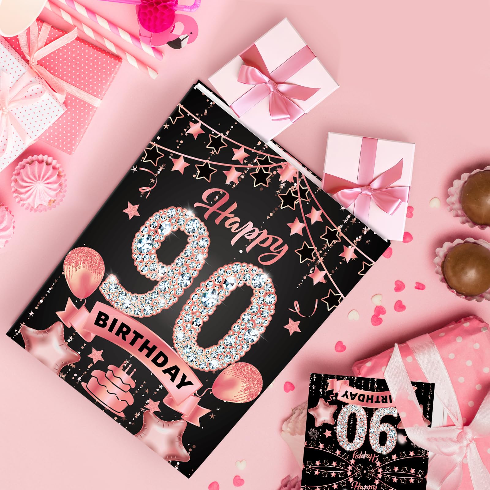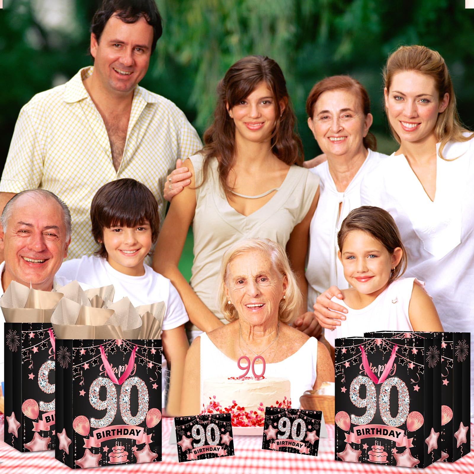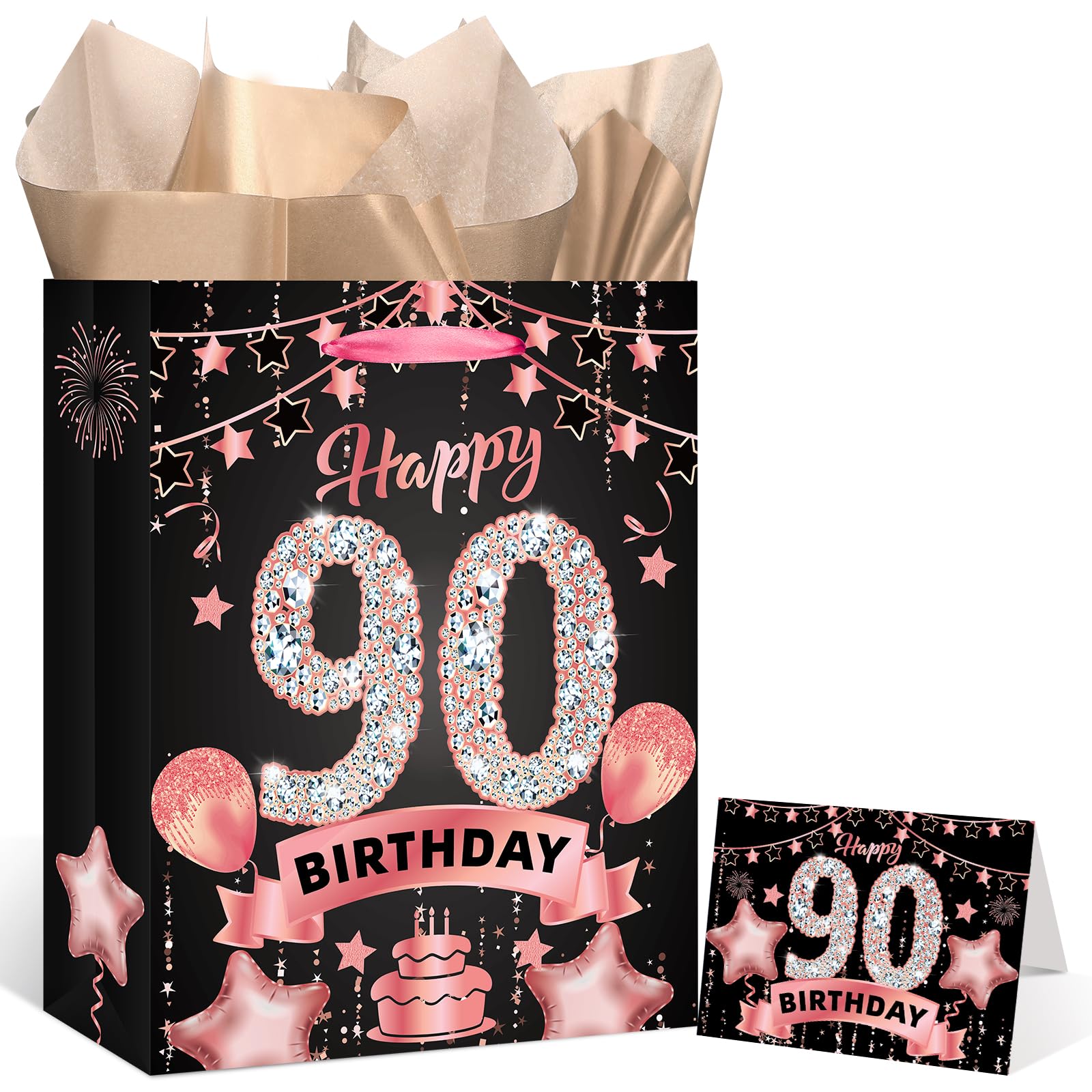 Quality Material:The material of the rose gold 90th birthday Gift Bag is crafted with durability in mind, the 90th Birthday Gift Wrap Bag is made of thick cardboard, come with nice ribbon handles and supportive reinforced bottom,the quality material of the 90th birthday bag ensures that it can be reused