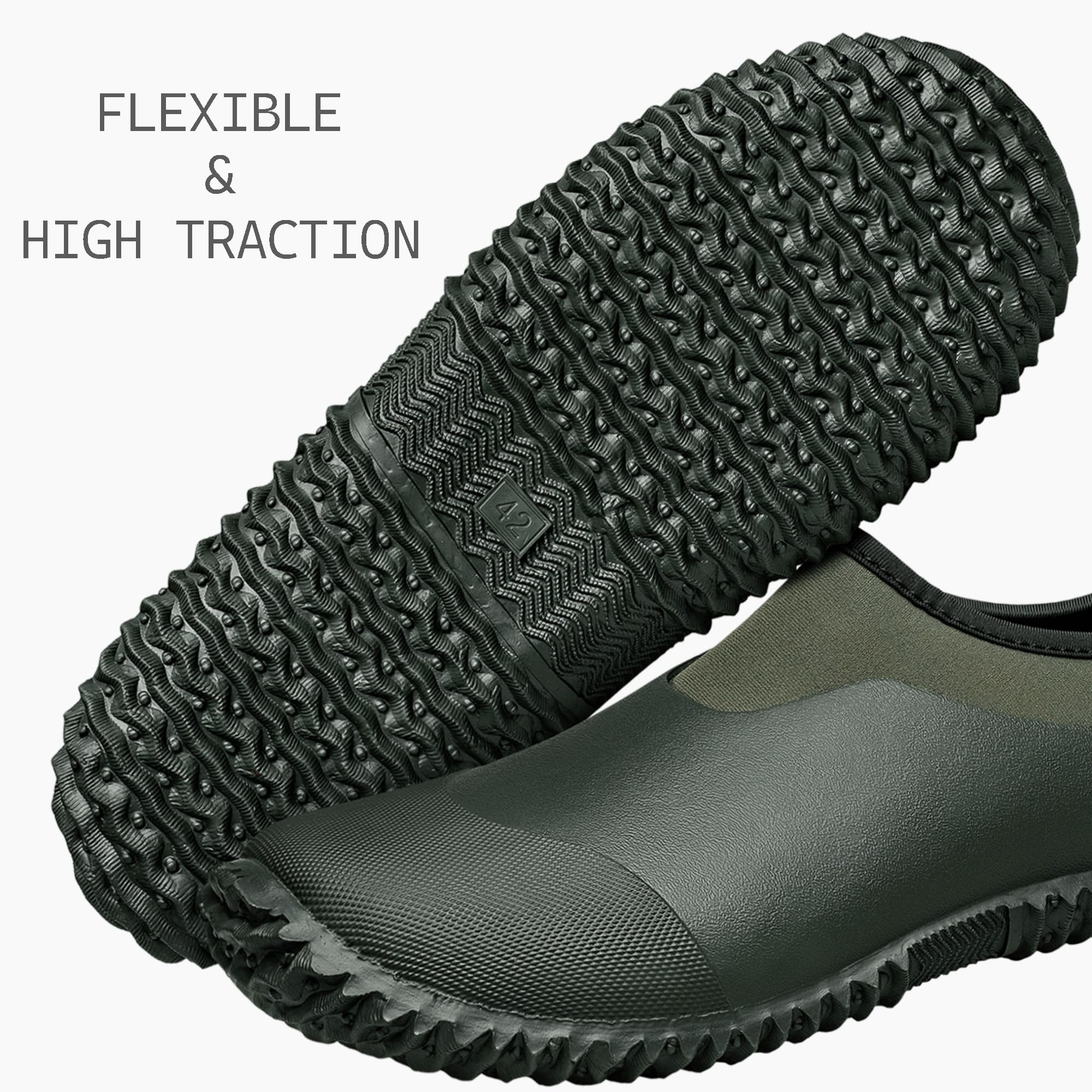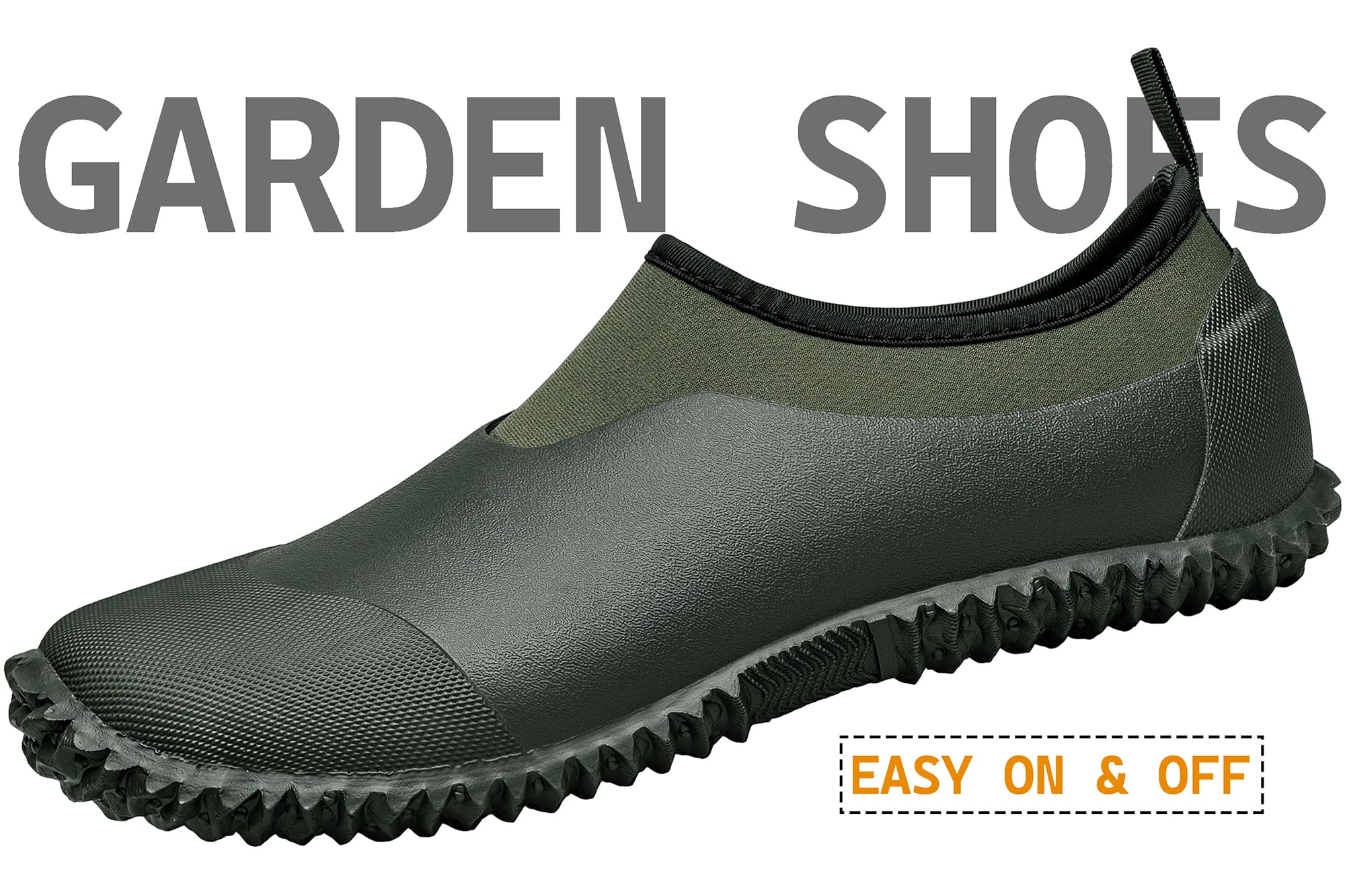 Comfortable; Flexible; High traction; Multifunction; Easy on and off for quick outdoor work or play.