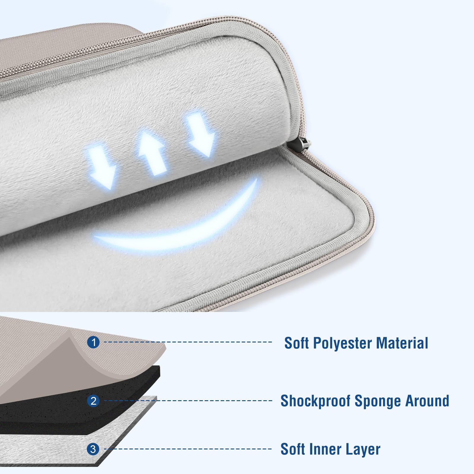Features a polyester foam padding layer and fluffy fleece fabric lining for bump and shock absorption and protection of your device against bump, shock and accidental scratches.