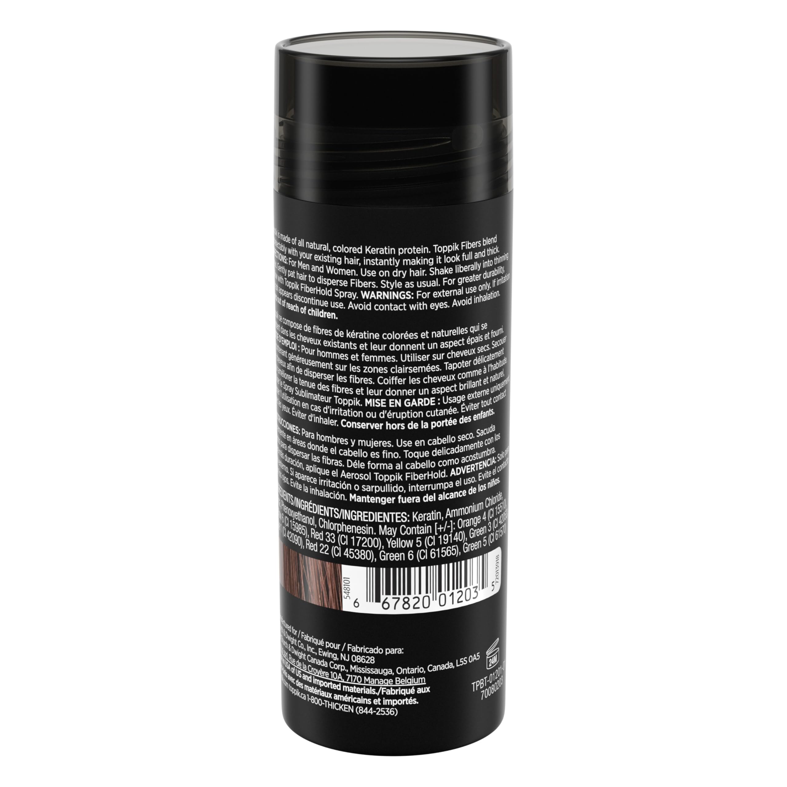 Toppik Hair Building Fibers, made of colored keratin protein, blend undetectably with existing hair strands to instantly create the appearance of naturally thick, full hair. Ideal for men and women with thinning hair, these fibers offer weather resistance and long-lasting results. Toppik Hair Fibers will stay in place until you wash your hair. Toppik is the #1 Hair Fiber among hair care products.