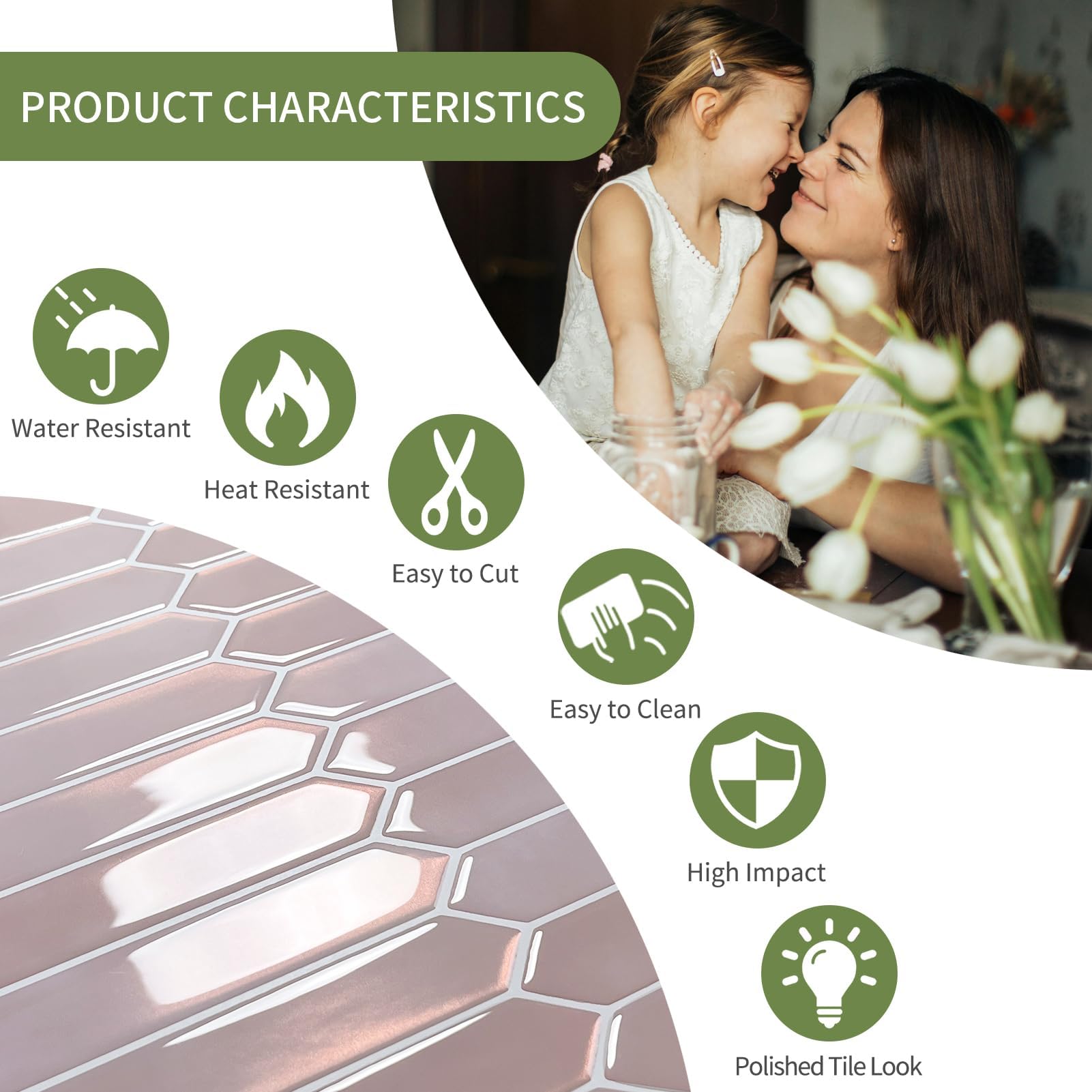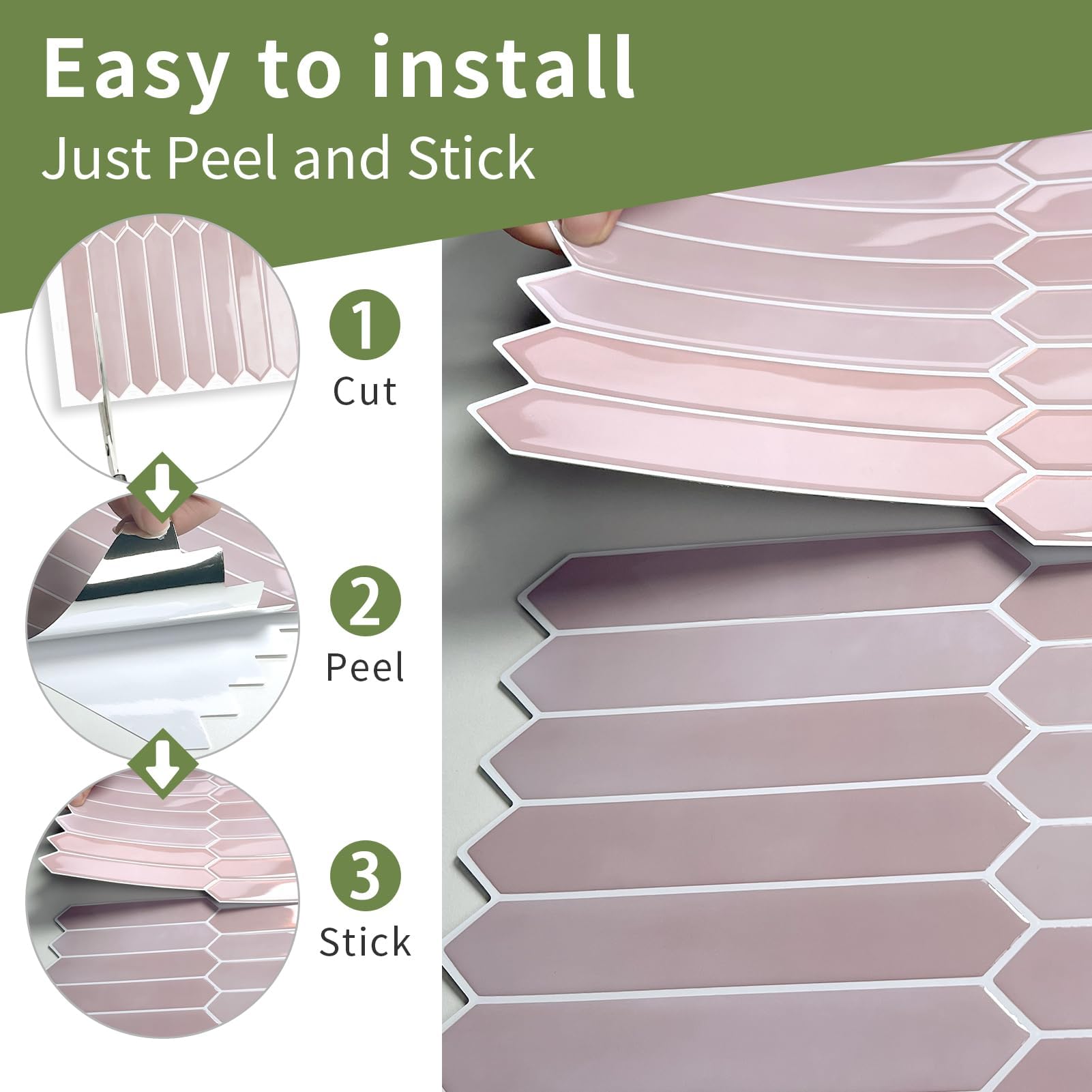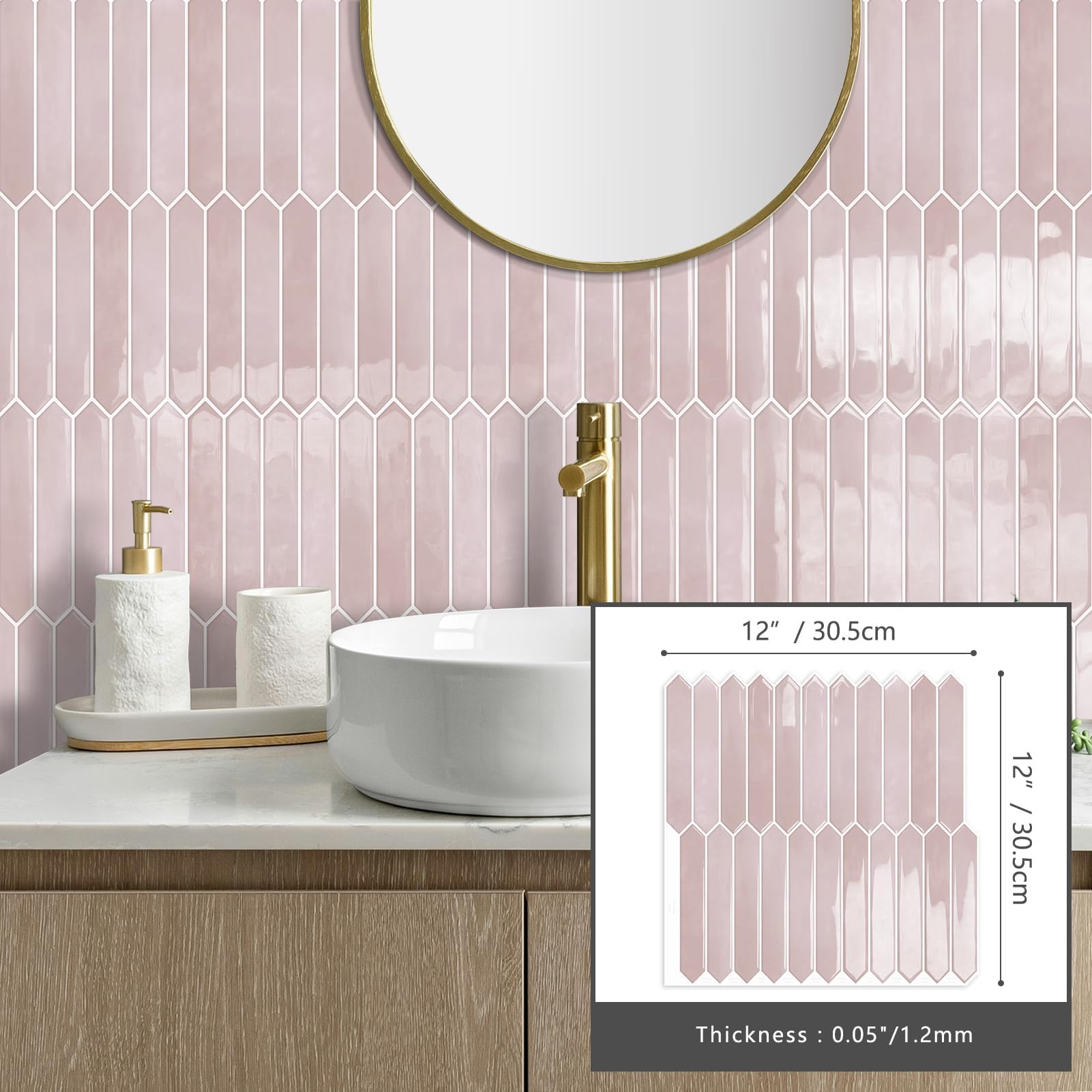 Package Includes:10 sheets of Pink long hexagon vinyl backsplash tiles, with each sheet measures 12"x12". These tiles boast a modern design, ensuring a stylish upgrade for your space.