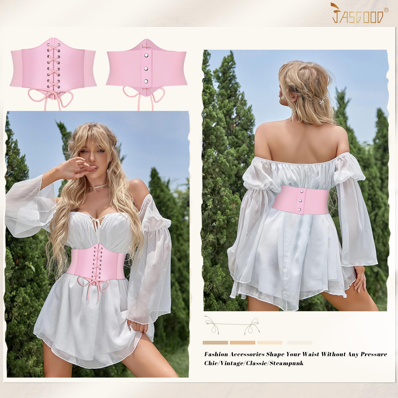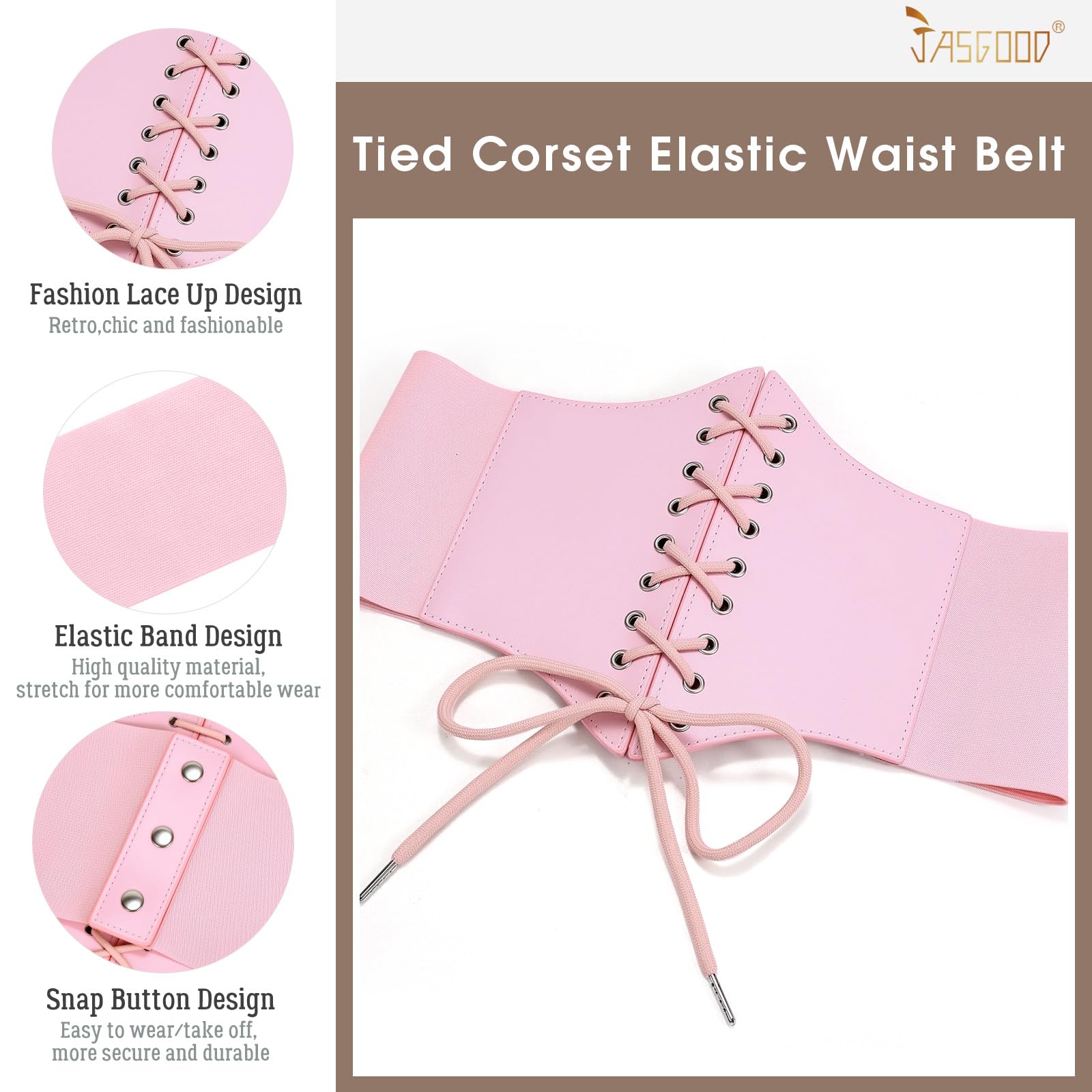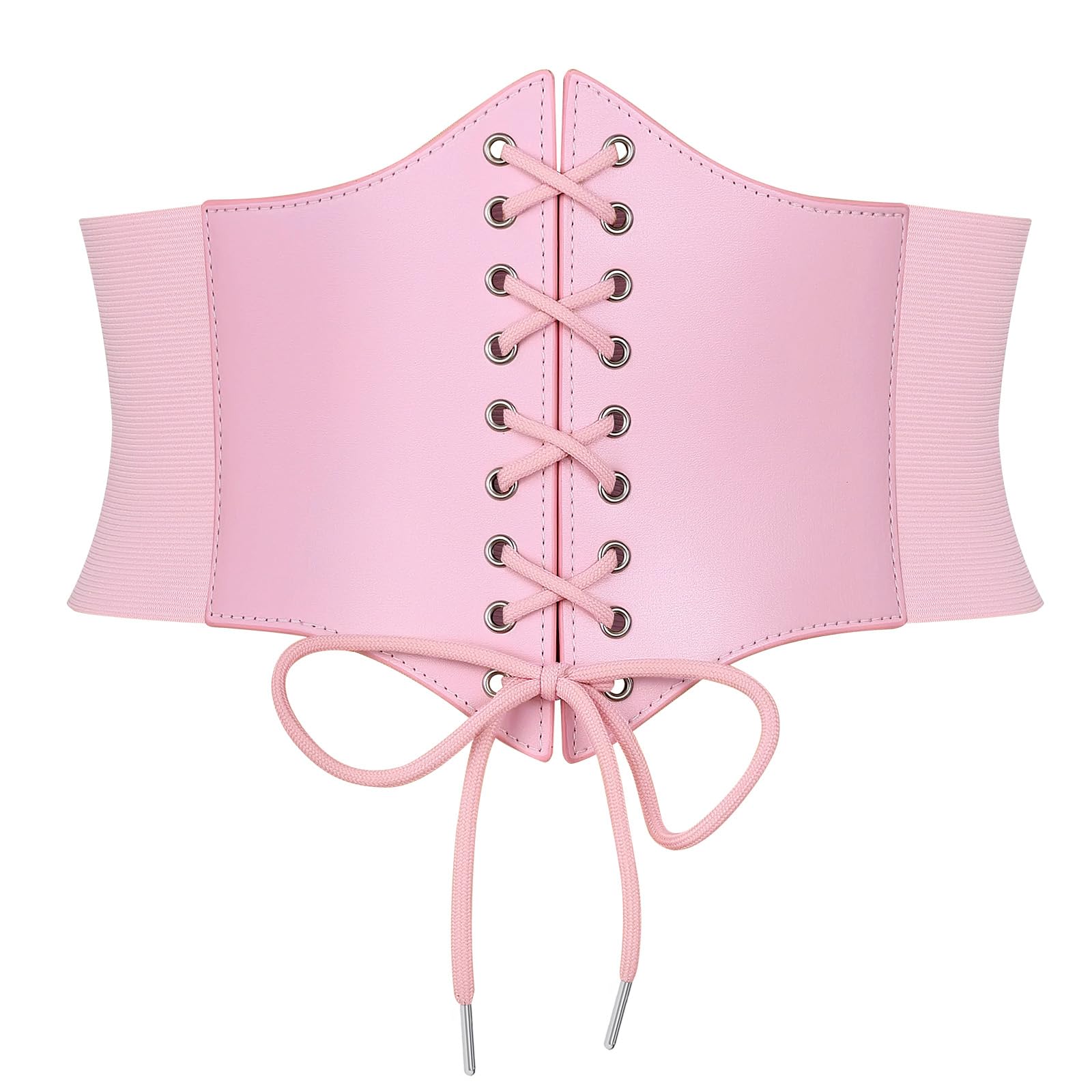 CLASSIC DESIGNβ Classic vintage style leather lace-up tied waspie corset belt, quality PU leather front sewed with well elastic wide band, fastened by 3 snap buttons, which is easy to put on and remove. This waspie corset belt is super comfortable to wear. Flatters your waist. The 7.6" width prevents dress belt from rolling up or rolling down in wearing.