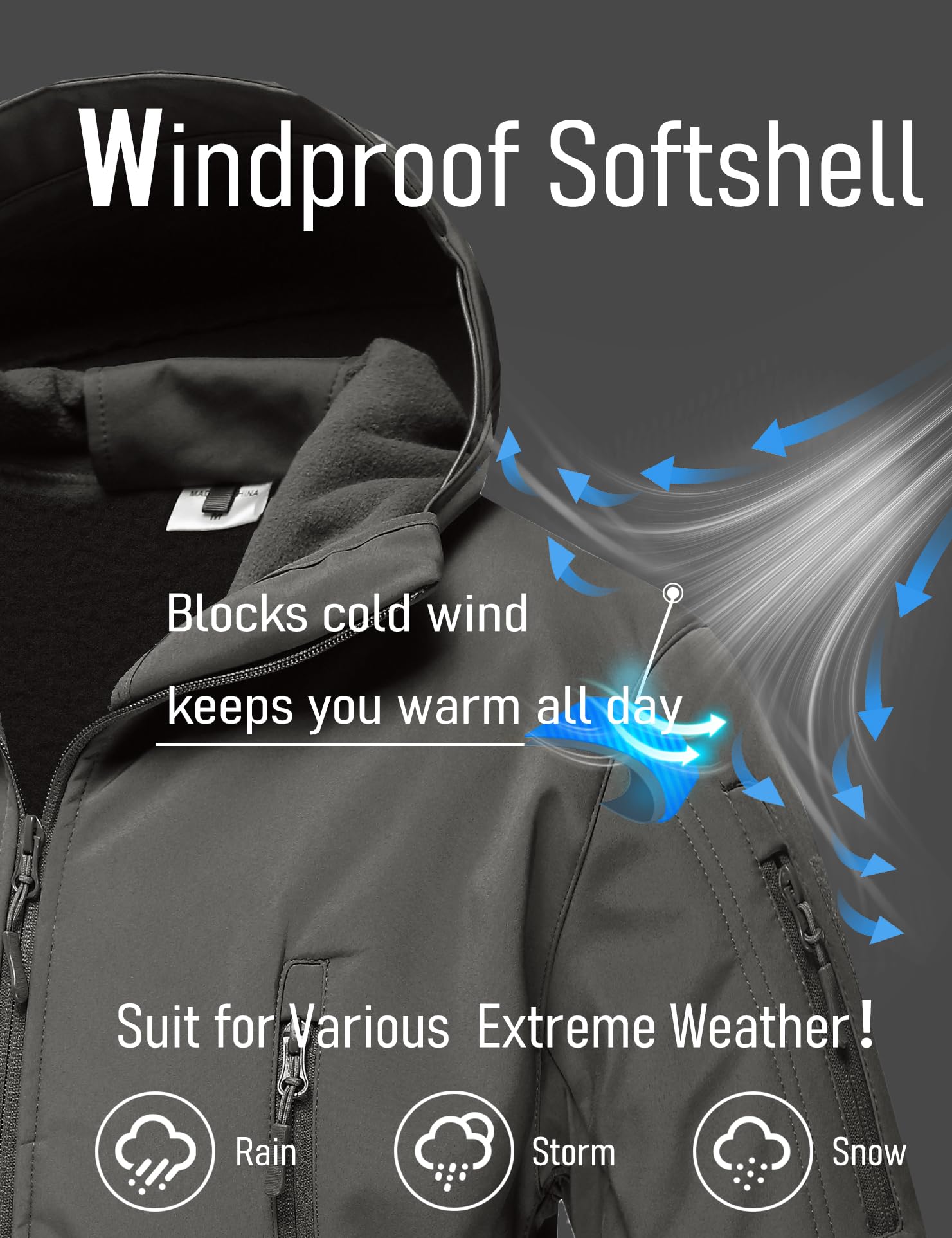 The softshell fabric with warm inner micro fleece. The outer layer features waterproof and windproof, while the inner layer keeps you warm all day.