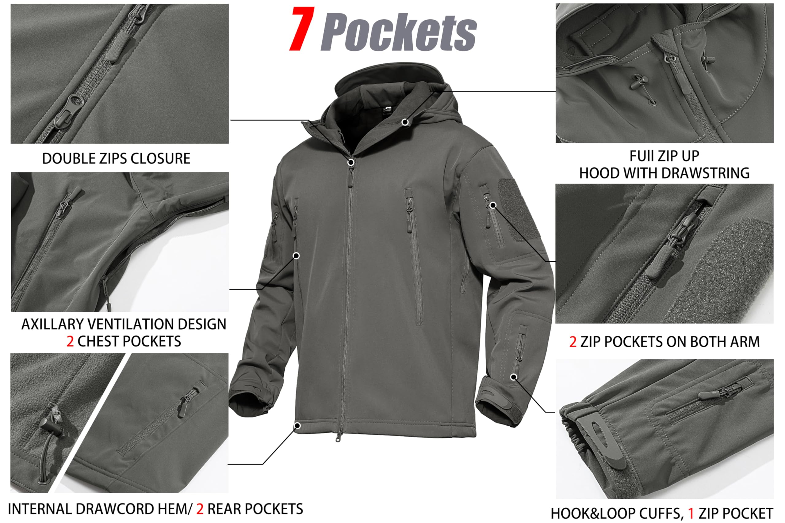 Men's tactical jacket with 7 pockets provide more portability. It can hold many tools to provide a convenience during your outdoor adventures.
