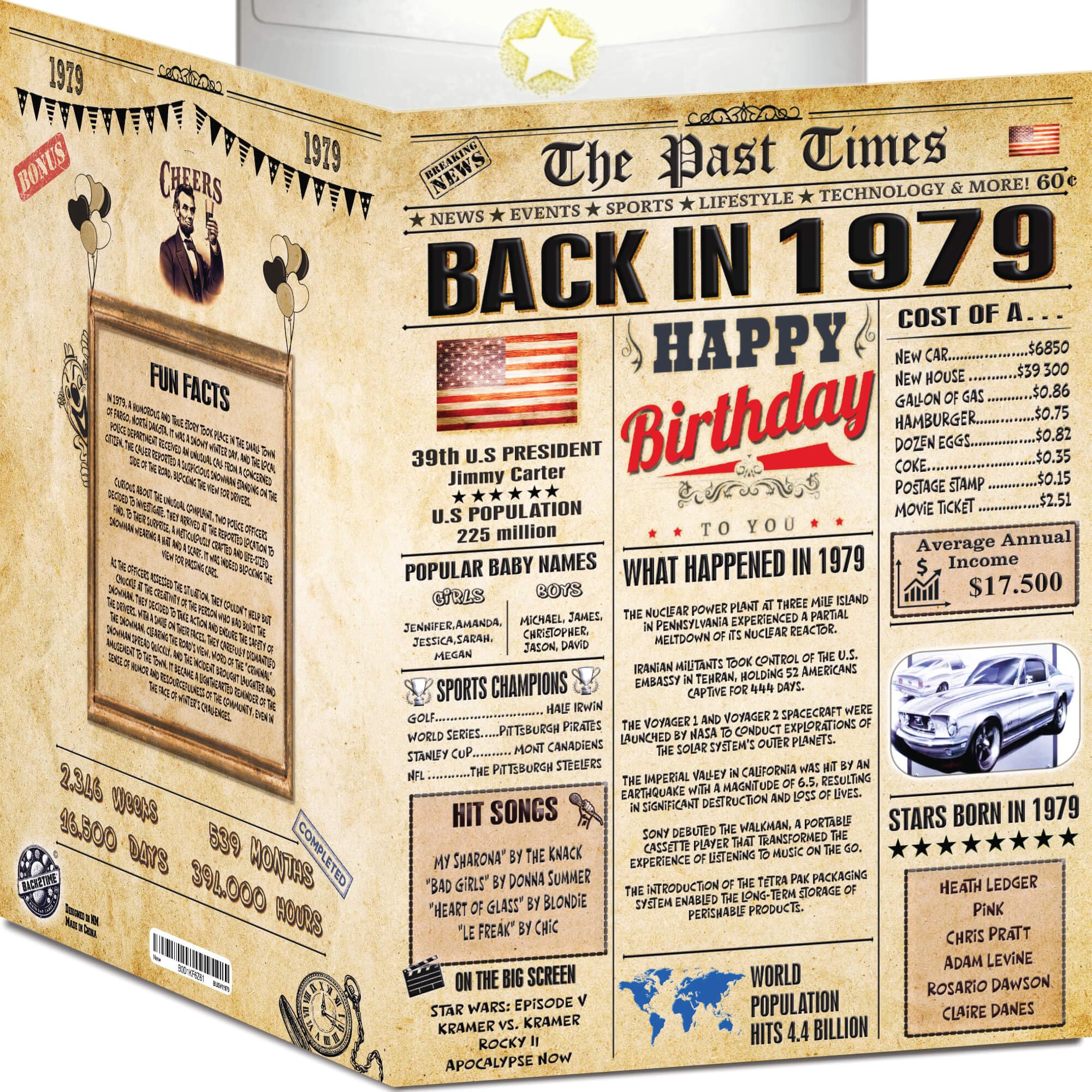 ๐ FUNNY BIRTHDAY CARD + EXCLUSIVE ENVELOPE ๐ Enjoy a beautifully printed Back in card that's entertaining to read, featuring a special bonus on the back with intriguing stories or lesser-known facts from that year. The interior offers space for personalized messages, designed with an aged appearance and elegant decorations to enhance the vintage feel. The included envelope boasts a unique design ideal for mom and adult born in 1979. Birthday Cards for Women, Birthday Cards for Men.