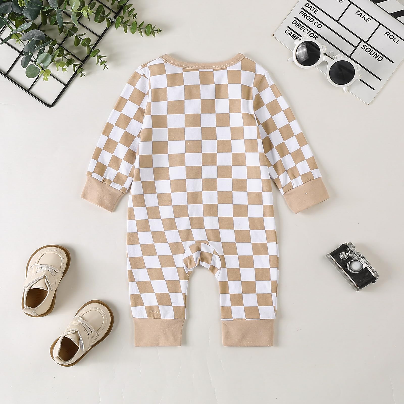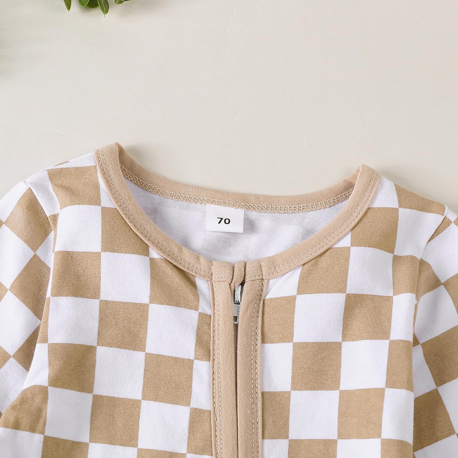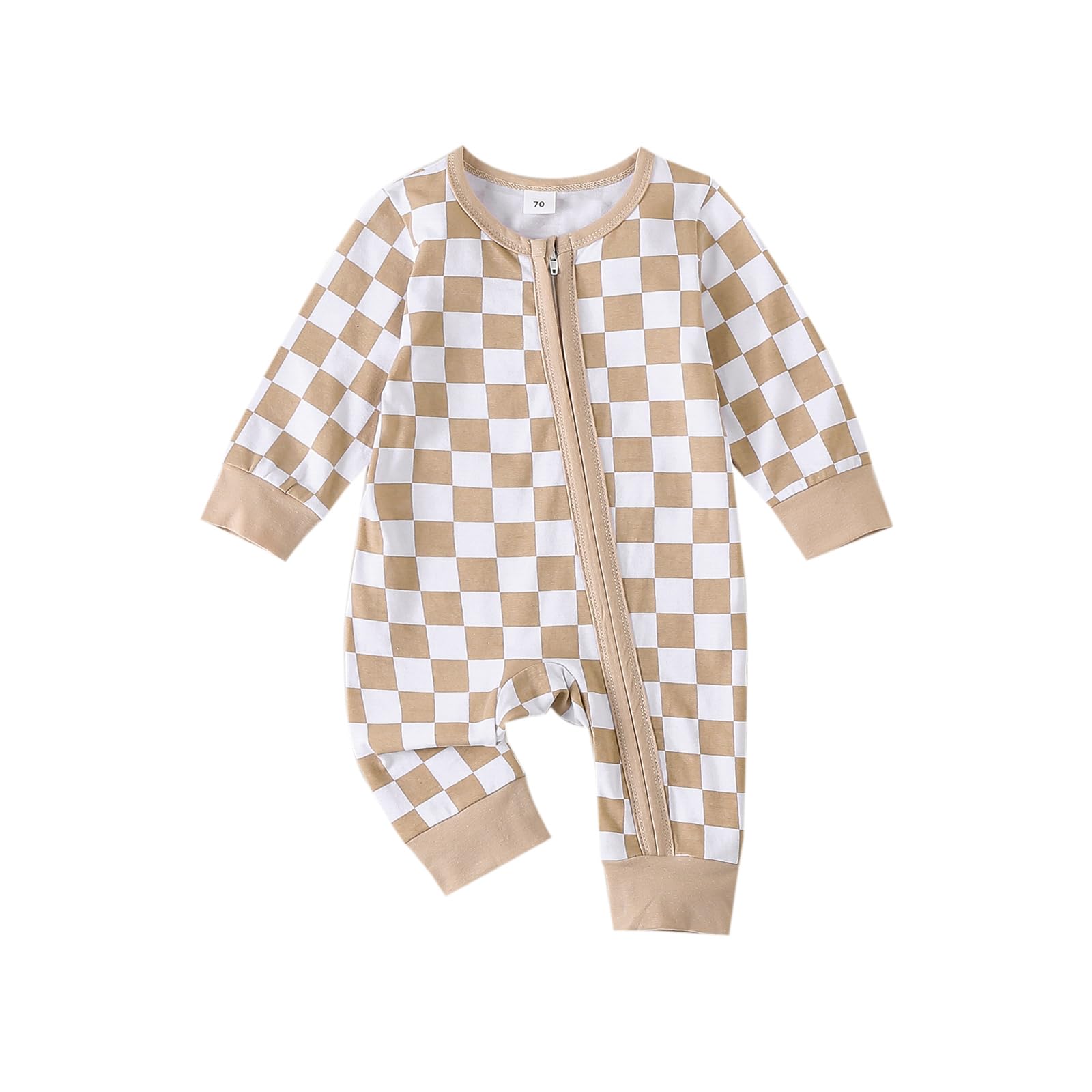 Description Karuedoo Newborn Baby Boy Girl Clothes Checkered Long Sleeve Zipper Romper Jumpsuit One Piece Bodysuit Fall Winter Outfit