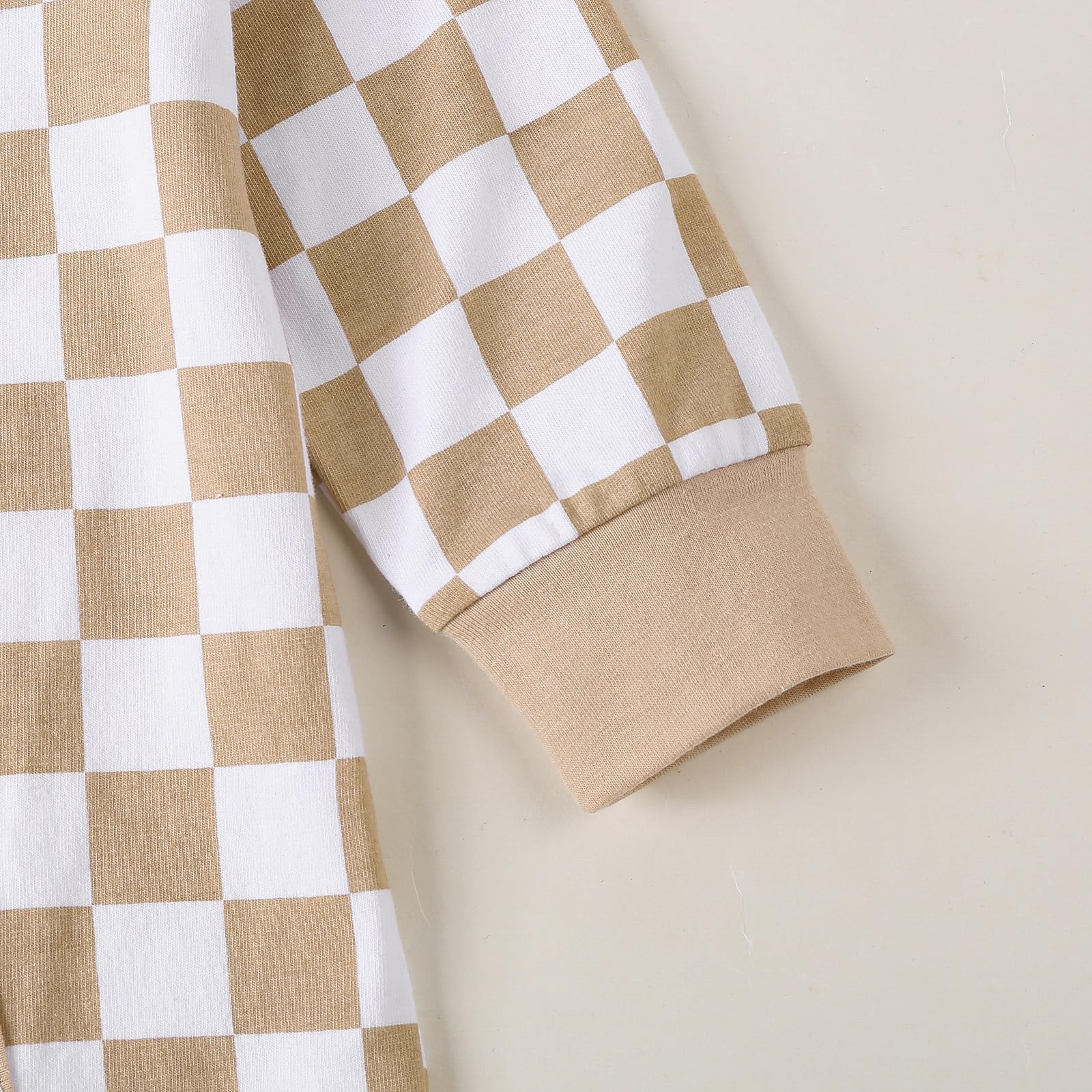 【Design】: Newborn baby boy girl fall outfit, checkered baby boy outfit, checkered baby girl outfit, checkered baby clothes newborn, baby boy checkered outfit newborn, checkered baby outfit girl newborn, baby boy girl checkered jumpsuit romper, infant baby boy girl checkerboard long sleeve zipper romper, features checkered plaid print, crew neck, long-sleeved, zipper, one piece omper, long pants jumpsuit, neutral checkered baby clothes, chic and stylish,your baby will love it!