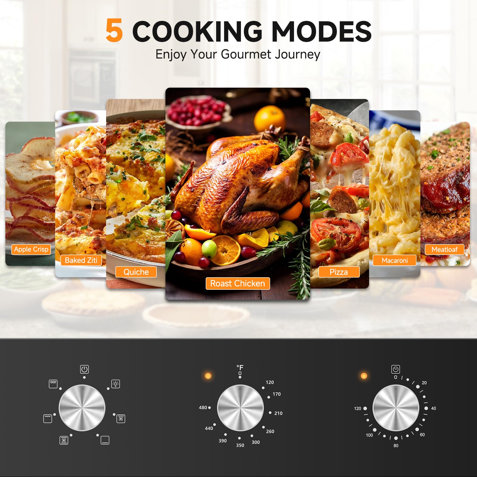 [WORRY-FREE PURCHASE] If you have any questions, please do not hesitate to contact our customer service team directly. Our customer service team will give you a satisfactory reply within 24 hours. The oven features a child lock function, allowing you to bake with peace of mind. The product dimensions are 23.4 "in width, 19.7" in depth, and 23.4 "in height. For built-in installation, we recommend a width of 23.6", a depth of 22", and a height of 23.4".