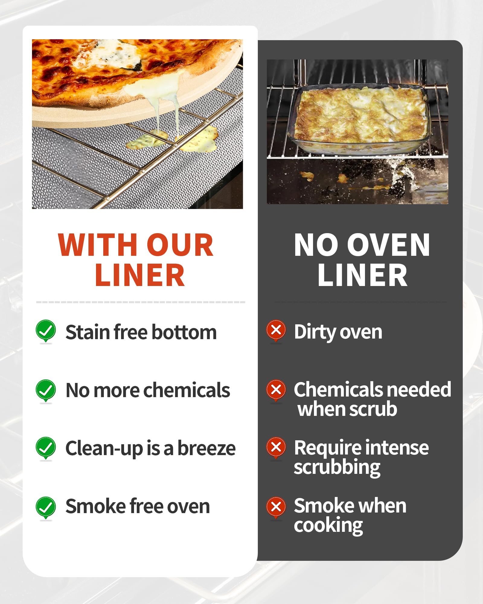 Keep Your Oven Clean – Our oven liners for bottom of oven could help catch spills, drips, and splatters so you may never have to scrub stubborn baked-on messes again.