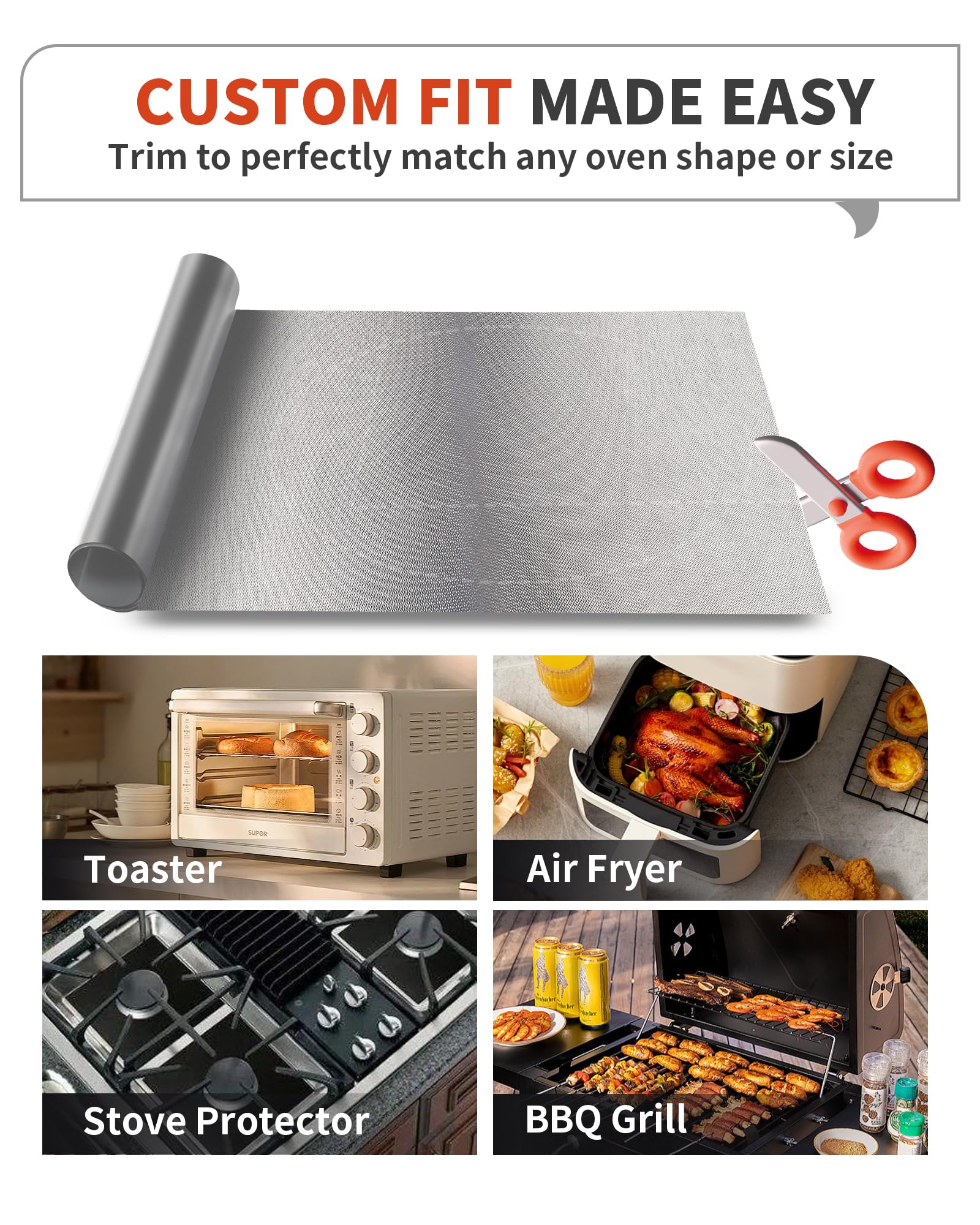 Custom Fit for All Ovens – Trim to fit toaster ovens, convection ovens, or use as a stove protector – fits perfectly under racks or trays.